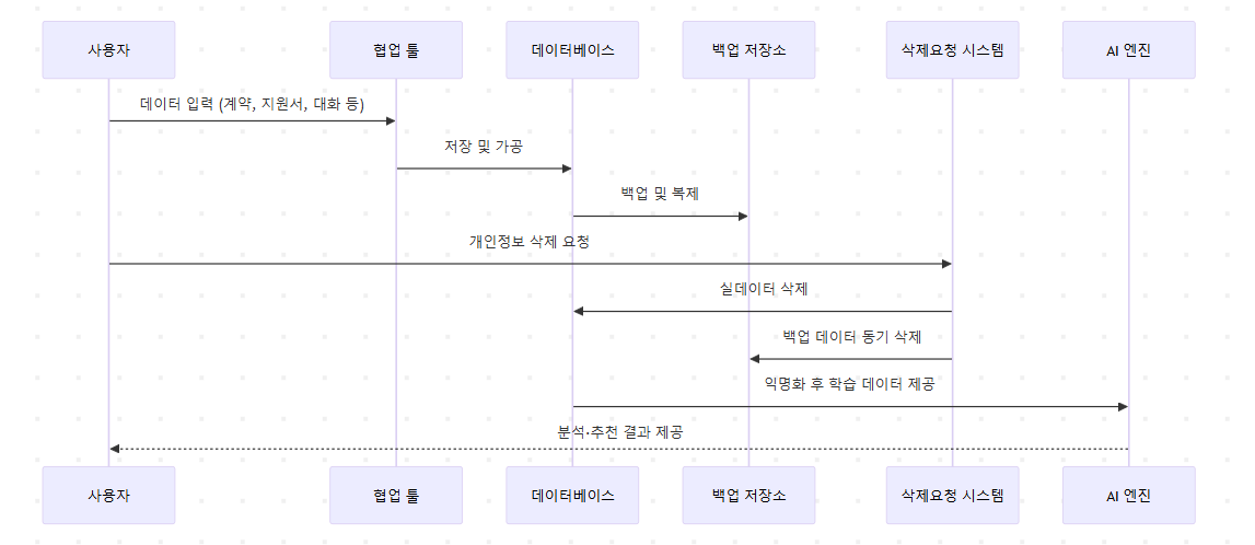 DSR(Data Subject Request) 시스템은 GDPR의 핵심입니다. 사용자가 “내 정보를 삭제해 달라”고 요청하면, 단순히 DB가 아니라 백업/AI 학습 데이터까지 추적 삭제해야 맞습니다.