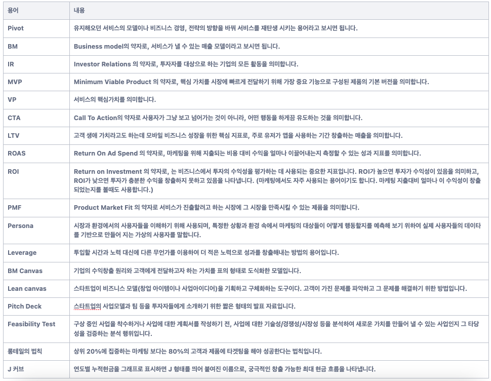 ☀︎ 스타트업 용어들은 대부분 영어의 줄임말들이 많습니다.