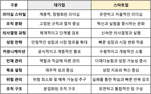 성장전략과 목표설정 그리고 위험관리를 보시면 스타트업은 성과로 왜 가서는 안되는지 명확히 보여주고 있습니다. (물론, 회사의 성과와 개인의 성과는 조금 뒤로 물려 두겠습니다. 성과 안내는 스타트업이 어떻게 살아남을 수 있냐고 혼내실 수 있으나, 현재의 비교군은 대기업 vs 스타트업입니다.)