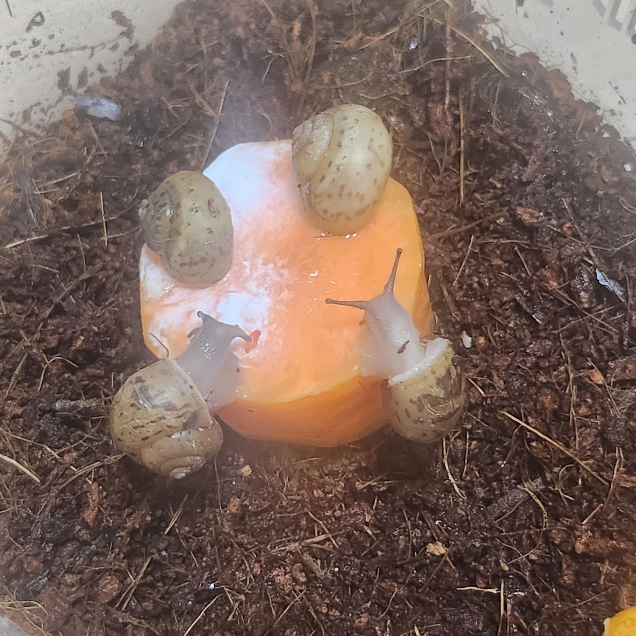누가 알을 낳았는지는 모르겠지만, 달팽이들에게 당근과 칼슘을 지급했습니다.