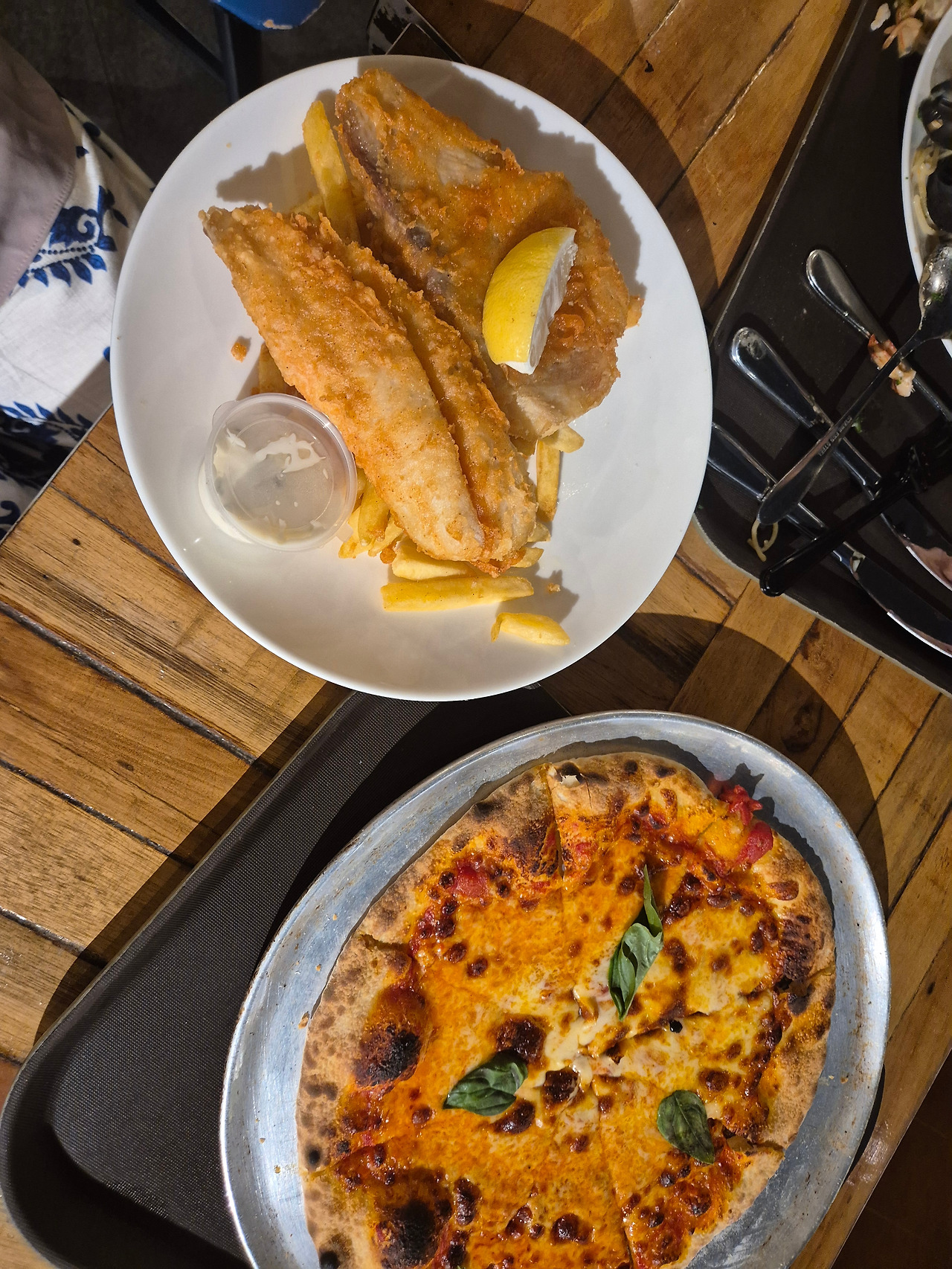 마트를 나서자 또다시 비가 내렸다. 어쩔 수 없이 마트 안에서 저녁을 먹기로 했다. 알리오올리오와 마르게리타 피자 그리고 피쉬 앤 칩스까지 이것저것 주문하고 물도 두 병 샀다. 밥을 먹을 때마다 물을 따로 사야 하는 점은 여전히 번거롭다. 한국인의 빨리빨리 근성 때문인지, 음식이 나올 때 까지 기다리는 것도 꽤 길게 느껴졌다.