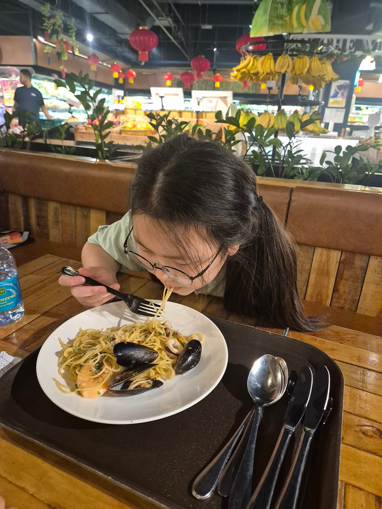 여섯 시가 되어 놀이공원 밖으로 나오니 엄마가 손을 흔들었다. 근처에 빅마트가 보여 자연스럽게 장을 보러 들어갔다. 어제 아울렛에서 가격에 한번 놀란 덕분인지, 마트에서는 이 정도면 저렴하다는 생각이 들었다. 아이의 초콜릿과 과자 몇 개, 시리얼, 아침에 먹을 빵과 잼, 작은 식용유와 우유, 어린이용 치약까지 챙겼다. 우리 돈으로 약 6만원. 제법 넉넉한 장바구니였다.