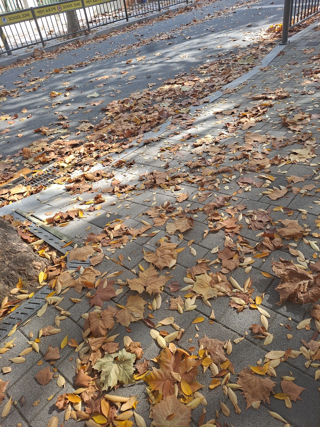 길가에 뒹구는 가을 낙엽과 파란 하늘 그리고 겨울 바다