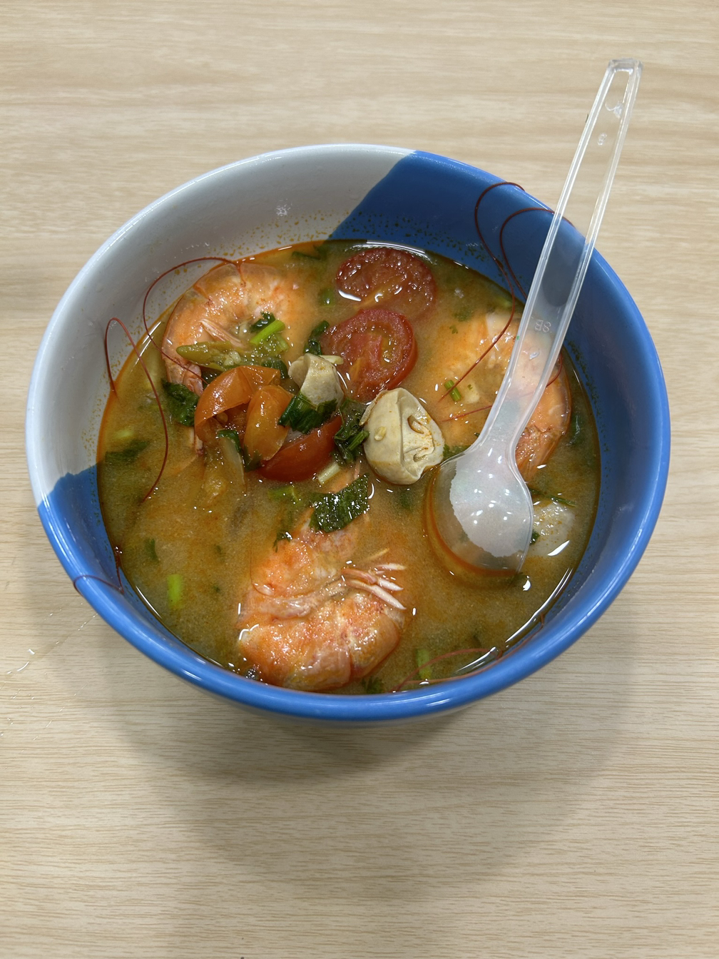 안내장에 써져 있는 교실번호를 찾아 조심스레 들어가 보니 큰 냄비와, 여러 가지 식재료들이 책상에 있었다. 선생님들끼리 점심식사 하는 곳으로 잘못 찾아온 줄 알았는데 수업장소가 맞았다. 나의 첫 태국어 수업은 모두 함께 똠양꿍 만들기였다. 가끔 이런 식으로 체험형 수업을 하는데 나의 첫 수업날이 딱 그 체험 날이었다. 자리에 앉자마자 생각했다. 태국어 수업 너무 재미있겠다고.
