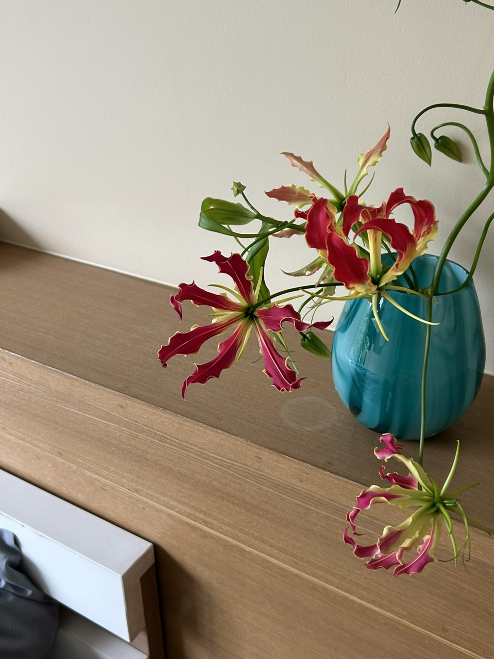 나는 매일 아침 화병의 물을 갈아주고, 꽃대를 새로 잘라주었다. 꽃이 시들어가면 다시 꽃시장으로 향해 새꽃을 꽂아놨다. 새로 생긴 나의 치앙마이 루틴이다. 질퍽한 인도, 매캐한 매연, 핑강의 물 비린내, 원색의 강렬한 꽃들, 생화를 비닐에 덜렁 담아주는 무심함. 이 모든 것을 용서하고 포용할 수 있는 치앙마이의 상냥한 꽃가격이었다.