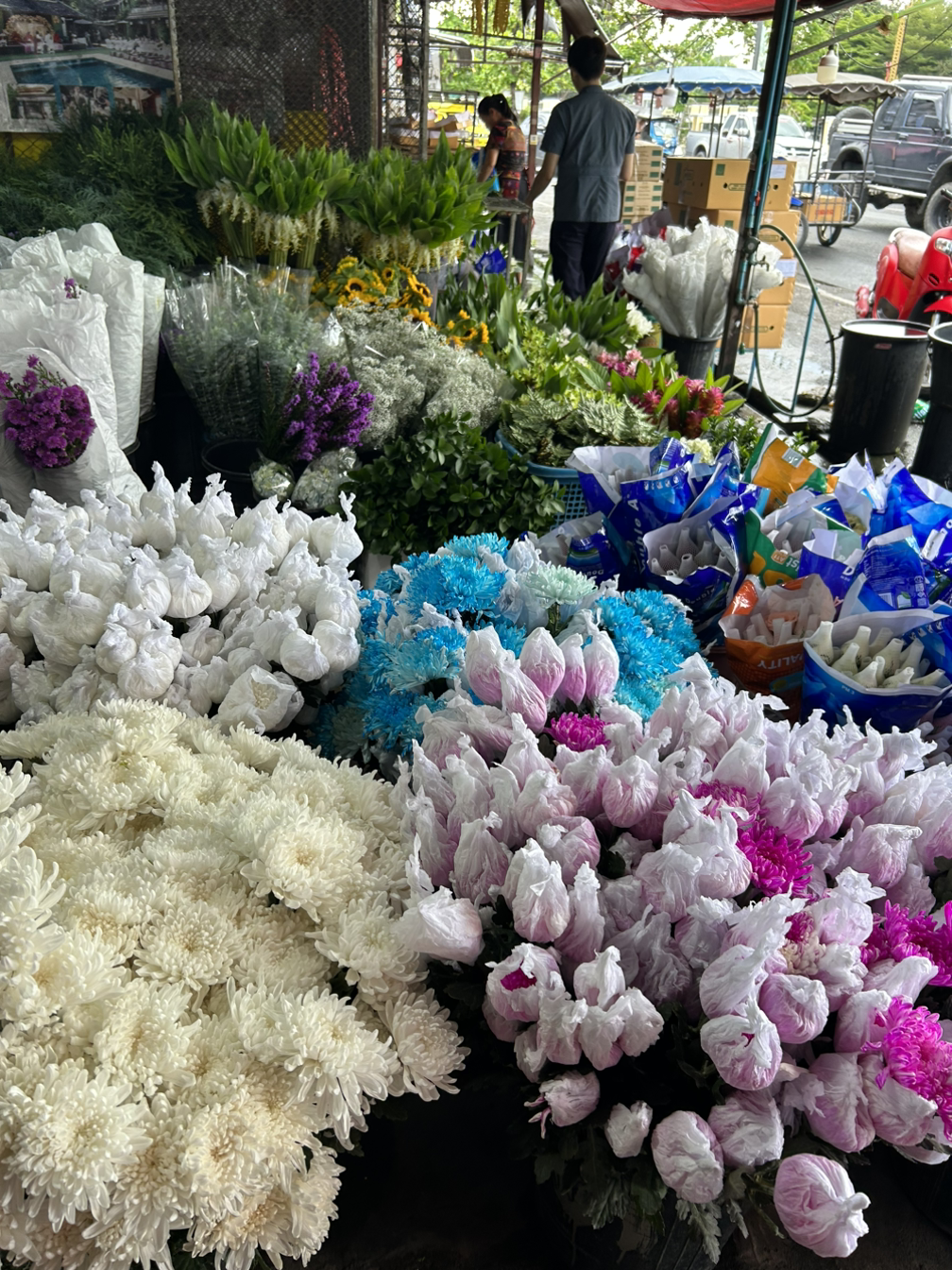 나는 플로리스트였다. 아직 남아있는 직업병의 일환으로 곳곳에 피어난 꽃과 식물을 보며 반가워하는 일상을 보내고 있다. 그러다 어느 날 문득 치앙마이에도 꽃시장이 있는지 궁금해졌다. 다행히 우리나라 고속터미널이나 양재꽃시장처럼 치앙마이에도 꽃만 판매하는 꽃시장이 있었다. 우리나라처럼 이곳도 일반인들이 거래할 수 있는 시장이었다. (종종 타국가는 상인만 입장할 수 있도록 엄격하게 관리하기 때문) 위치를 보니 와로롯 시장 바로 옆이었다. 차로 15분 정도 걸리는 곳이니 안 갈 이유가 없지. 나는 다음날 바로 치앙마이의 꽃시장으로 향했다.