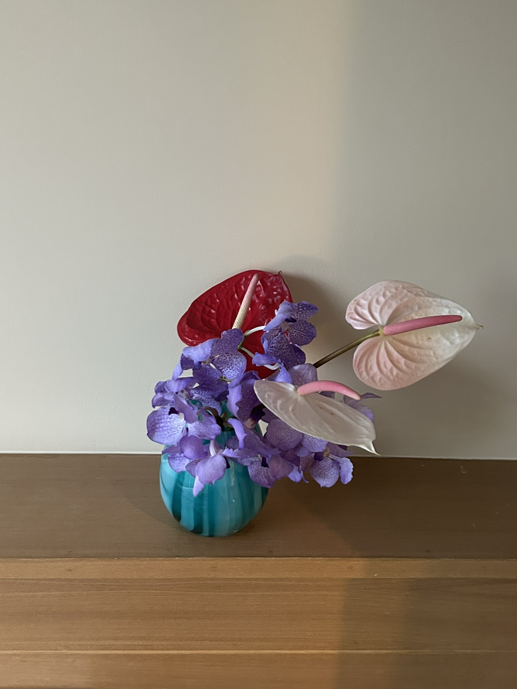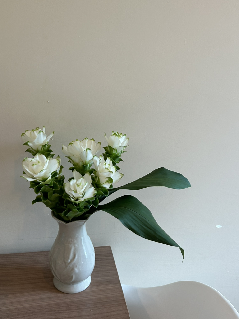 한 송이가 아닌 한 단 가격이 천 원, 그래 오늘 환율에 의거하여 천 백 원이라면 3만 원에도 대형 다발을 만들 수 있겠다고 생각했다. 나는 조심히 뒤에 쌀 가마니들처럼 쌓여있는 서양난 한 덩어리도 물어봤다. 이건 좀 비싸겠지 싶어서. 돌아오는 대답은 “삼 씹 밧” 이였다. 나는 한국에서는 감히 살 수도 없었던 서양난 한 묶음과 쿠루쿠마를 봉투에 덜렁덜렁 들고 숙소로 돌아왔다. 꽃시장 어디 구석에서 먼지가 쌓여가던 화병 두 개를 골라왔는데 이 안에 천 원짜리 꽃들을 조심히 다듬어 소중하게 넣어주었다. 단지 화병 두 개가 생긴 것뿐인데 숙소의 분위기가 180도 달라진 기분이 들었다. 훨씬 화사하며 아늑하고 조금 더 내 공간이 된 것 같았다.