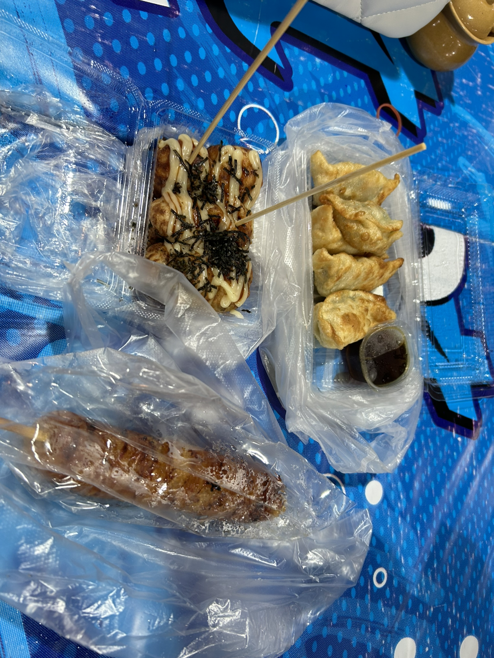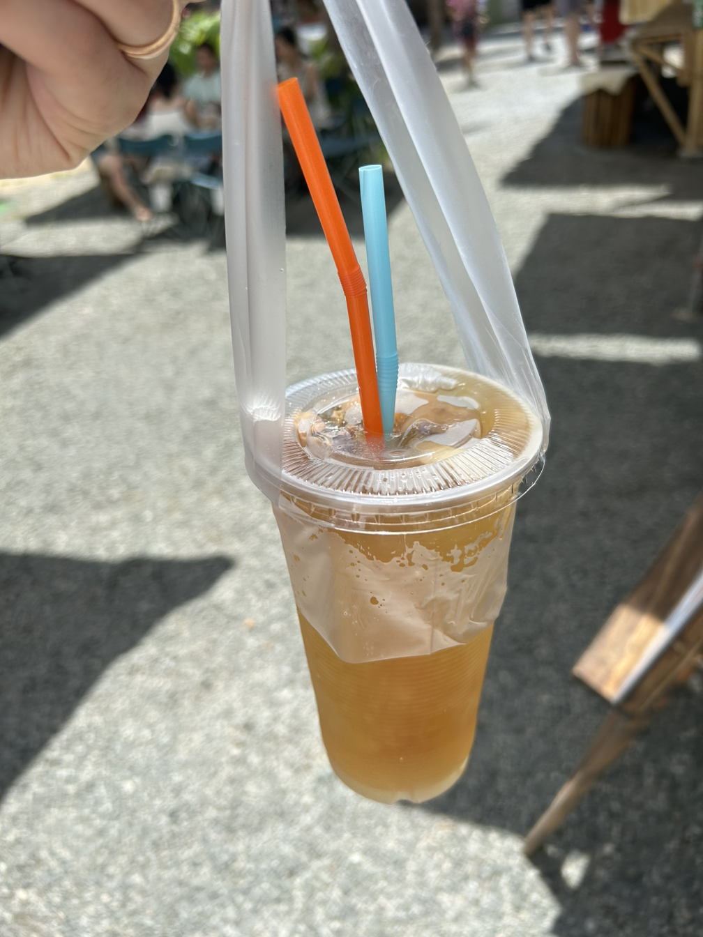 언니와 먹고 싶은 음식들을 여러 개 구매해서 식당으로 들어가기로 했다. 식당에서 메인 음식 한 개를 시키고, 시원한 맥주를 마시면서 사 온 음식들을 먹자고 했다. 음식 부스 양 옆으로는 다양한 메뉴를 판매하는 식당들이 많았다. 우리는 어디로 들어갈까 어물쩡거리고 있는데 저 멀리서 누가 웃으면서 다가왔다.