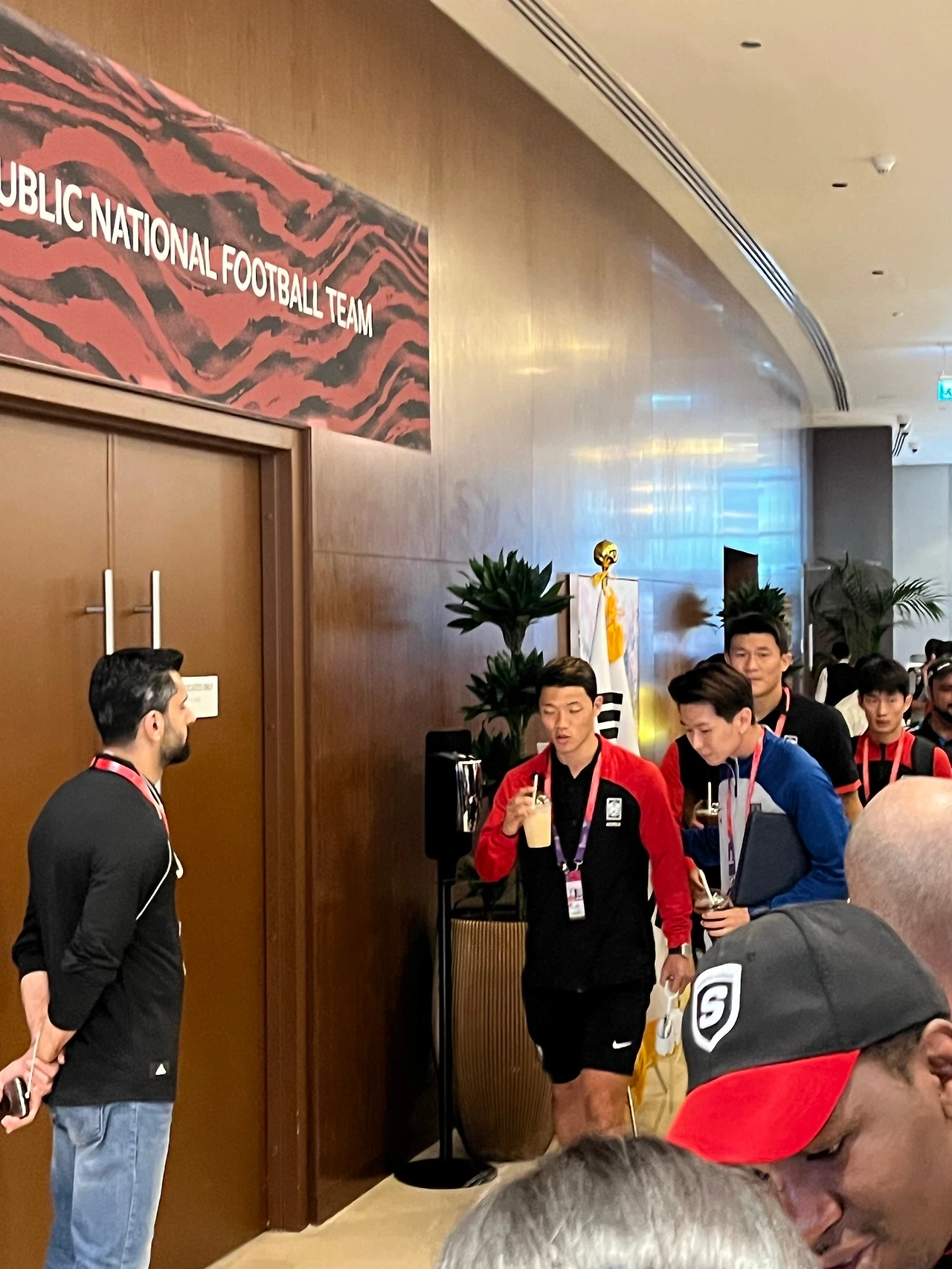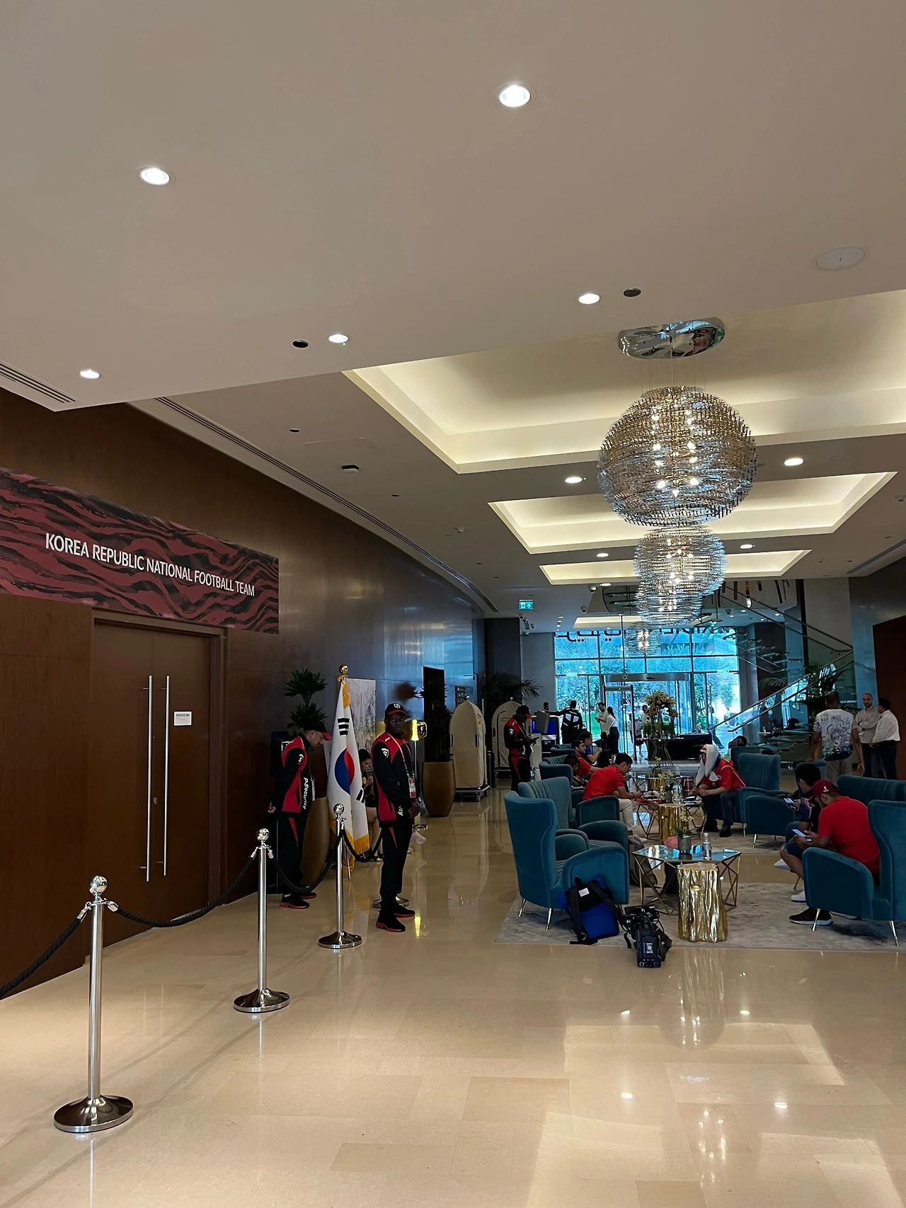 얼떨결에 한국 축구대표팀 숙소 로비에 들어와 버린 것이다 ㅋㅋㅋ
