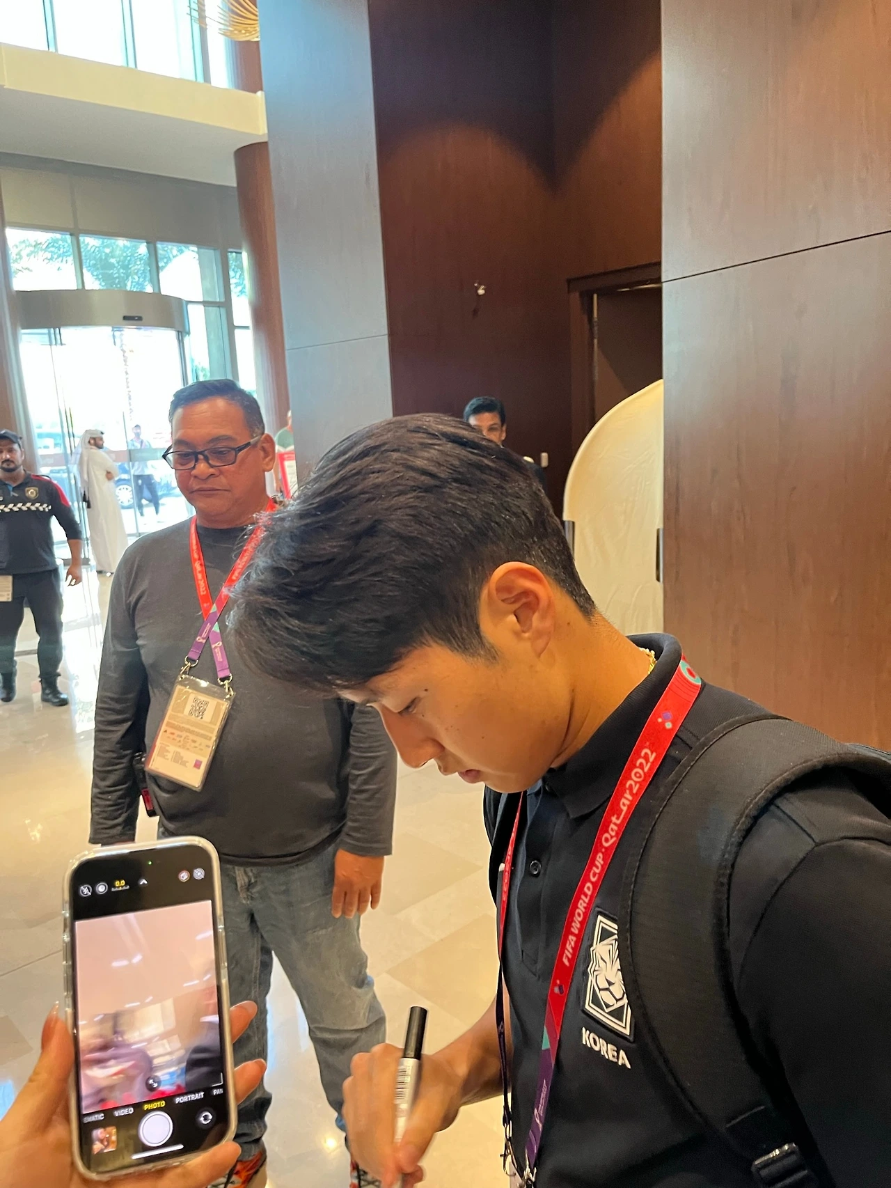 내가 먼저 '강인 선수 사인 좀 해주세요!'하고 소리쳤다.