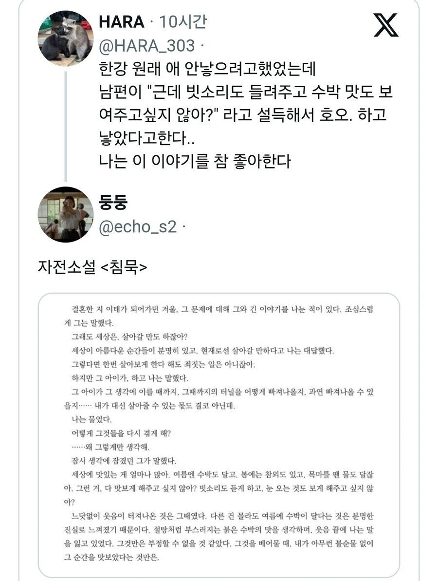 한국인이 노벨문학상을 받긴 어려울 것이라고.