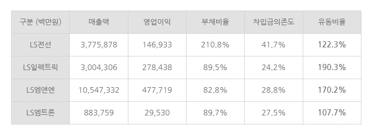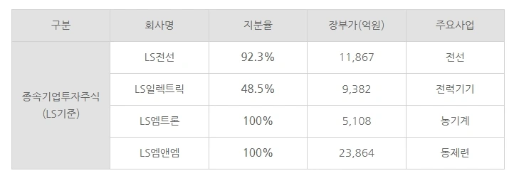 다른 점은 주력 계열사가 영위하는 사업인데 전선과 구리 제련업에 Edge가 있다는 것 정도가 되겠네요.
