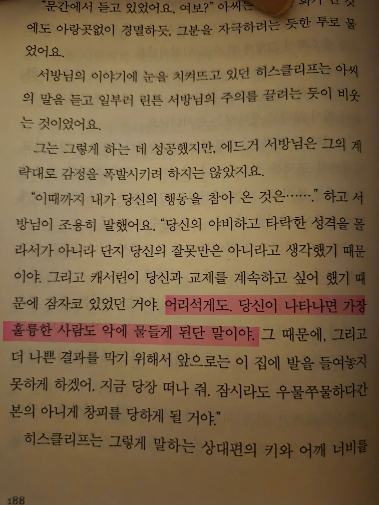 에드거 린튼이 히스클리프를 집안에 못 들어오게 하는 부분