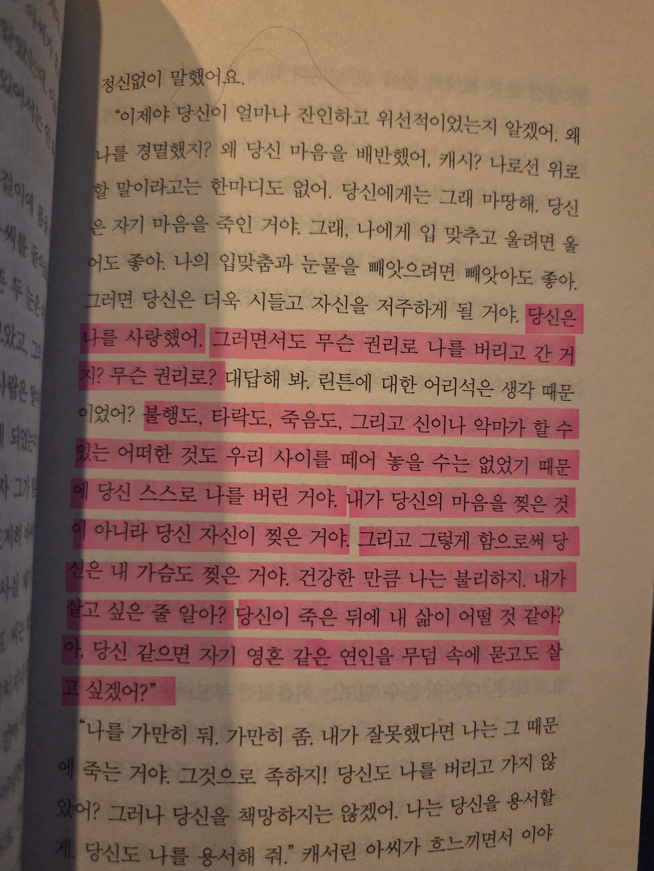 내가 생각하기에 이 부분이 폭풍의 언덕 핵심 구절인 것 같다. 불행도 타락도 죽음도 갈라놓을 수 없는 사랑앞에서 굴복하고 마는 인간의 마음ᆢ