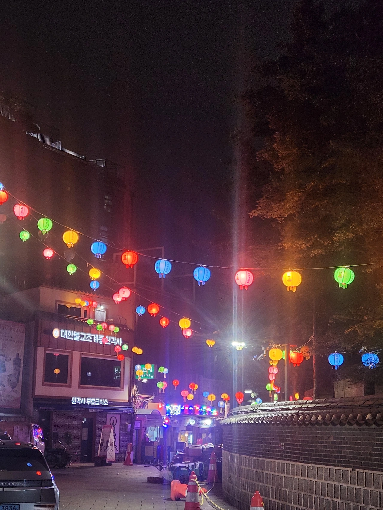 5월 초, 저녁, 부처님 오신 날을 맞이 해서 전등이 켜진