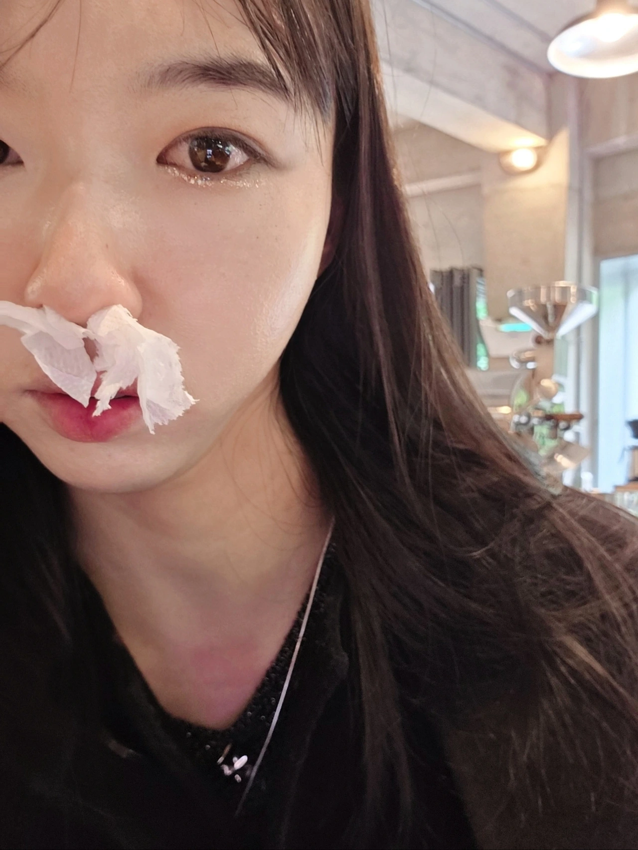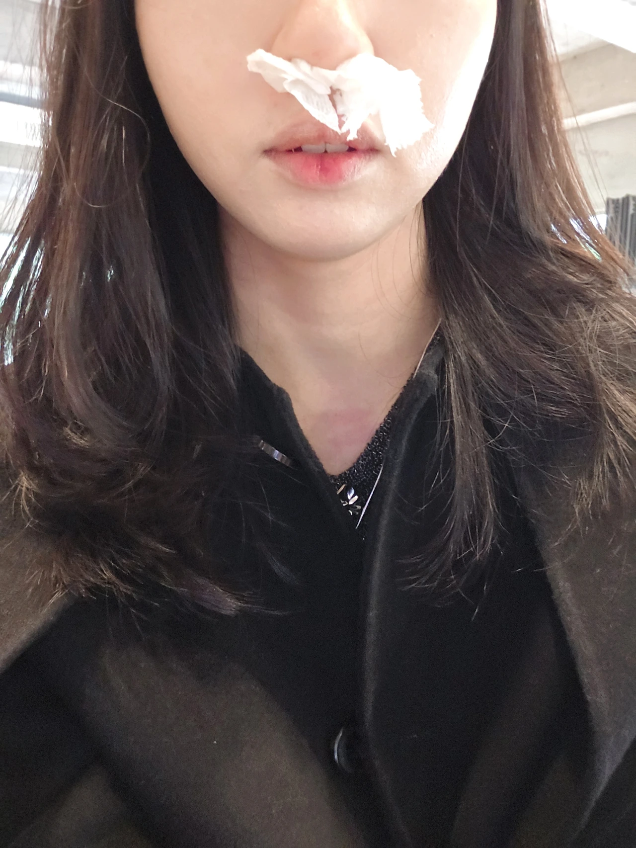 갑자기 심해진 비염 때문에 결국 휴지로 막혀버린 내 코
