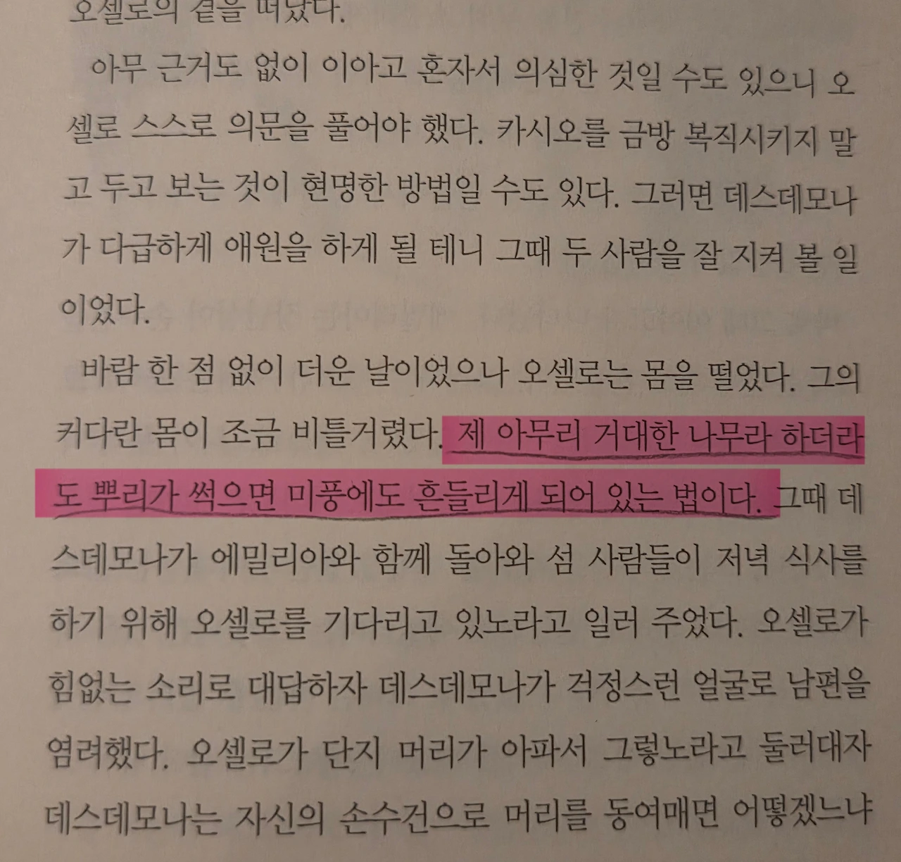 _ 카라마조프가의 형제들에 나오는 도스토예프스키의 오셀로 비평. 나는 이보다 더 압도적인 관점에서 오셀로를 비평하지 못 하겠다. 항복.
