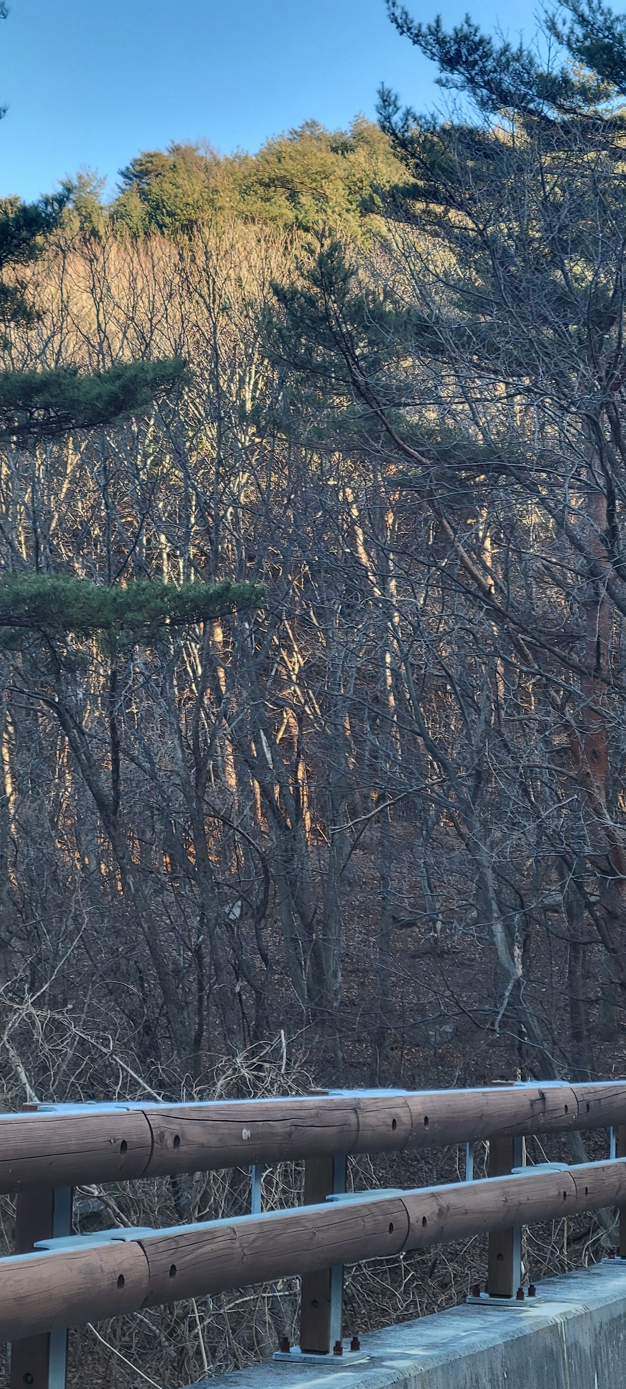 얇은 옷을 껴입고 작은 물병을 하나 들고 길을 나섰다. 대관령 옛길의 입구에 차를 세우고(내가 한국에서 보았던 주차장 중에 가장 넓었고, 한가했다.) 완만한 언덕을 오르기 시작했다. 아직 눈이 오지 않은 겨울 산은 푹신한 흙으로 걸음을 편하게 해주었고 길에서 만나는 징검다리와 계단, 낙엽을 떨군 앙상한 나뭇가지들이 산을 지키고 있었다.