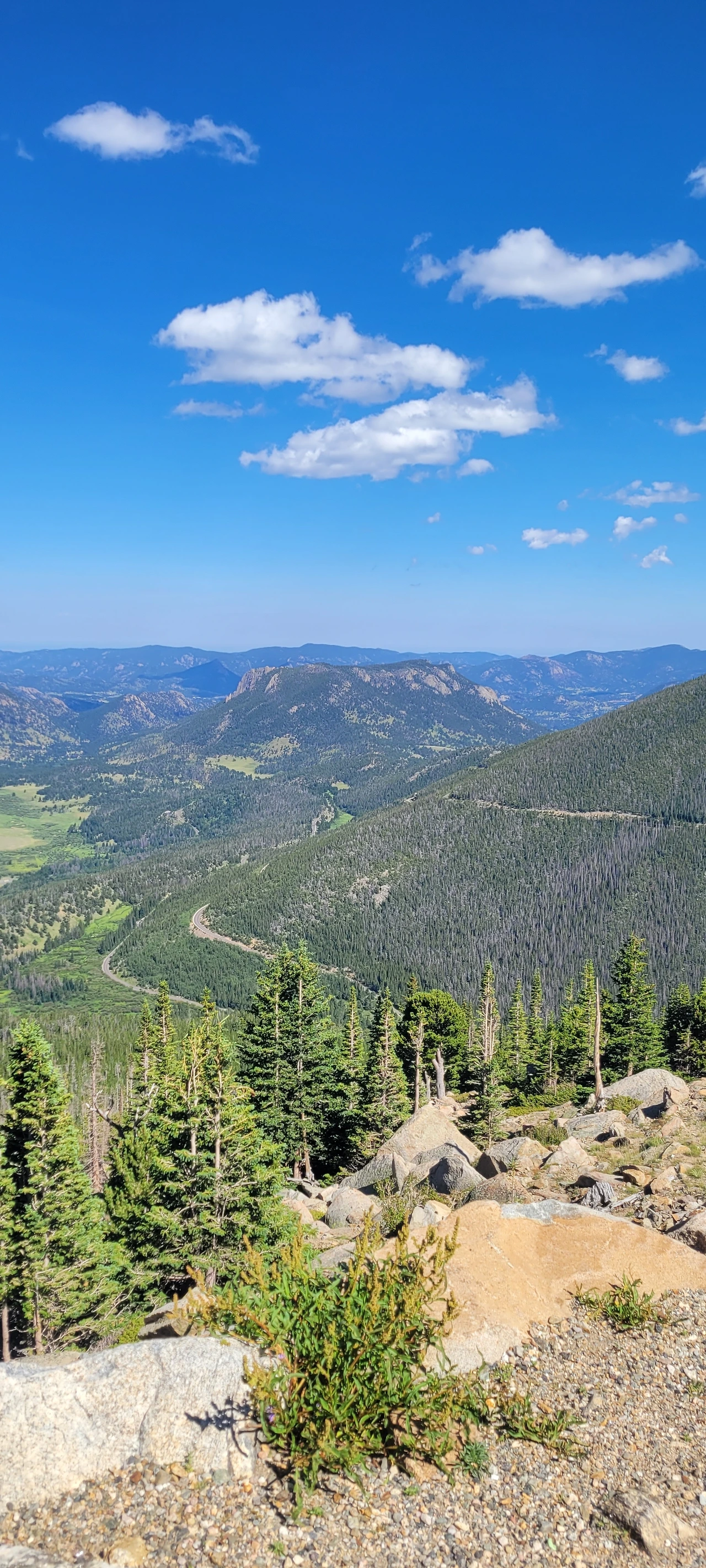 도착한 곳은 레인보우 커브(Rainbow curve). 그곳에서 내려다 보이는 작은 호수와 툰드라 지역은 숨을 멎게 할 만큼의 평온하고 고요한 풍경이다. 눈을 돌려 산을 올려다보면 만년설을 이고 서 있는 석암이 보인다. 공원 입구와 온도 차이를 확연히 느낄 수 있는 곳에서 인증샷 몇 개를 찍고 돌아 나왔다. 이미 시간이 많이 지나 베어 레익을 가기는 힘들 것 같았고 네비를 찍고 두 부부가 머물 덴버의 다운 타운으로 향했다. 에스테스 팍에서 덴버까지 운전은 생각보다 복잡했고, 나도 처음 가보는 길로 네비는 안내를 했다.