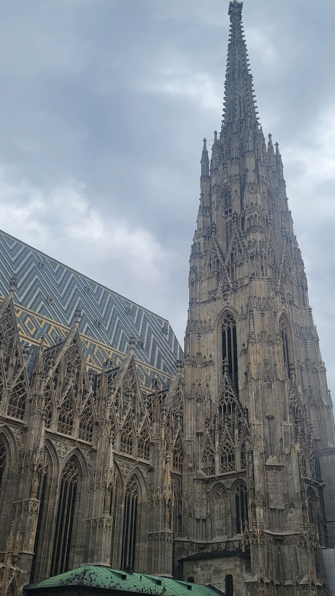걸어서 가장 먼저 도착한 곳은 하선장에서 가까운 슈테판 광장. 젊은 청년들이 난해한 복장과 줄담배를 피며 곳곳에 모여 있다. 그 바로 옆에 빈 대교구의 슈테판 대성당(Stephansdom)이 자리 잡고 있다. 로마네스크 및 고딕양식으로 지어진 대성당은 루돌프 4세가 주도하여지었다고 한다. 빈의 가장 중심지인 곳에, 옛 성당 2개가 있던 유적지에 새로 세워진 대 성당. 성당의 지붕이 다양한 색깔의 타일로 만들어져 독특한 모양을 가지고 있다.