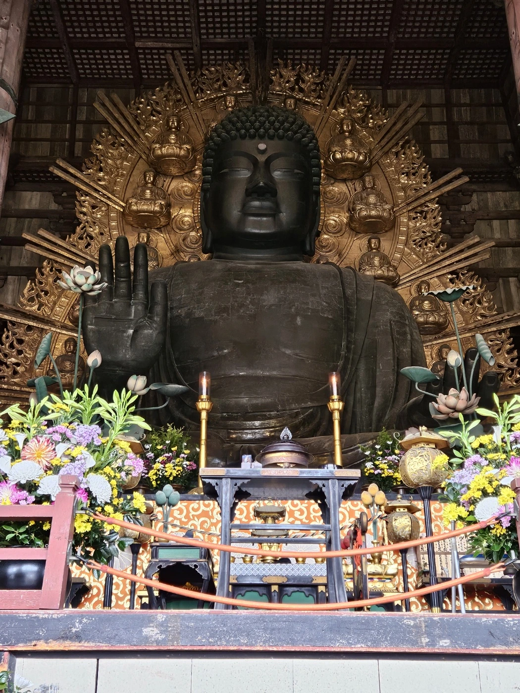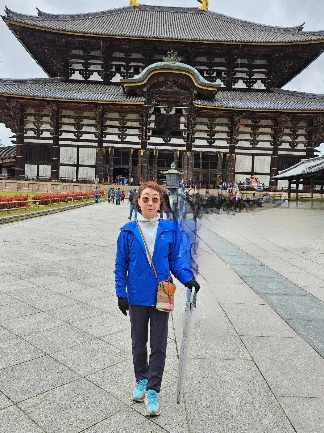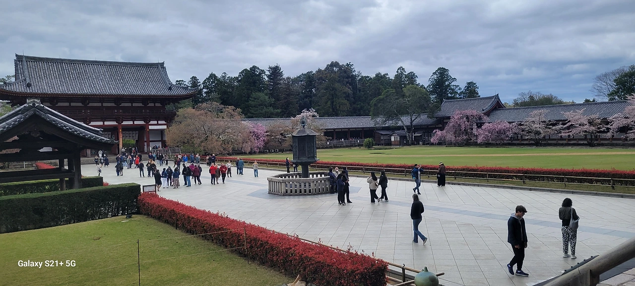 봄비 그친 거리. 연 초록 이파리들 사이로 발걸음을 옮긴다. 주차장에서 한참을 걸어 들어가야 만날 수 있는 도다이지(Todaiji 동대사).유네스코 세계유산에 등재된 목조사찰. 1203년 처음 건축되어 1709년에 재건하였다. 대웅전 안의 불상은 얼굴의 길이만 5미터라고 하니 그 규모를 알 수 있을 것 같다. 코너 코너를 돌 때마다 불전함이 있었는데 그곳에 동전을 던져 넣고 소원을 빌면 이루어진다는 전언. 사찰 안을 돌다 보니 커다란 나무 기둥 가운데에 사람 하나 들어갈 만한 구멍이 있고, 그걸 통과하면 10년 액운을 막아 준 단다. 호기심에 나도 해볼까? 싶었지만 줄이 너무 길었다. 대웅전 밖에는 병자들을 위한 불상이 하나 있었고 자신이 아픈 곳이 있으면 그 불상의 그곳을 만지면 낫는다고 한다. 딱히 아픈 데는 없지만 머리가 맑아졌으면 좋겠다는 욕심에 머리를 만지고 싶었지만 손이 가는 곳은 무릎 정도. 무릎을 한번 만지고 돌아 나온다. 대웅전 앞 광장의 정원들은 한참 단장 중이었고, 단풍철에 오면 장관을 이룬다는 한마디 귀동냥으로 듣는다.