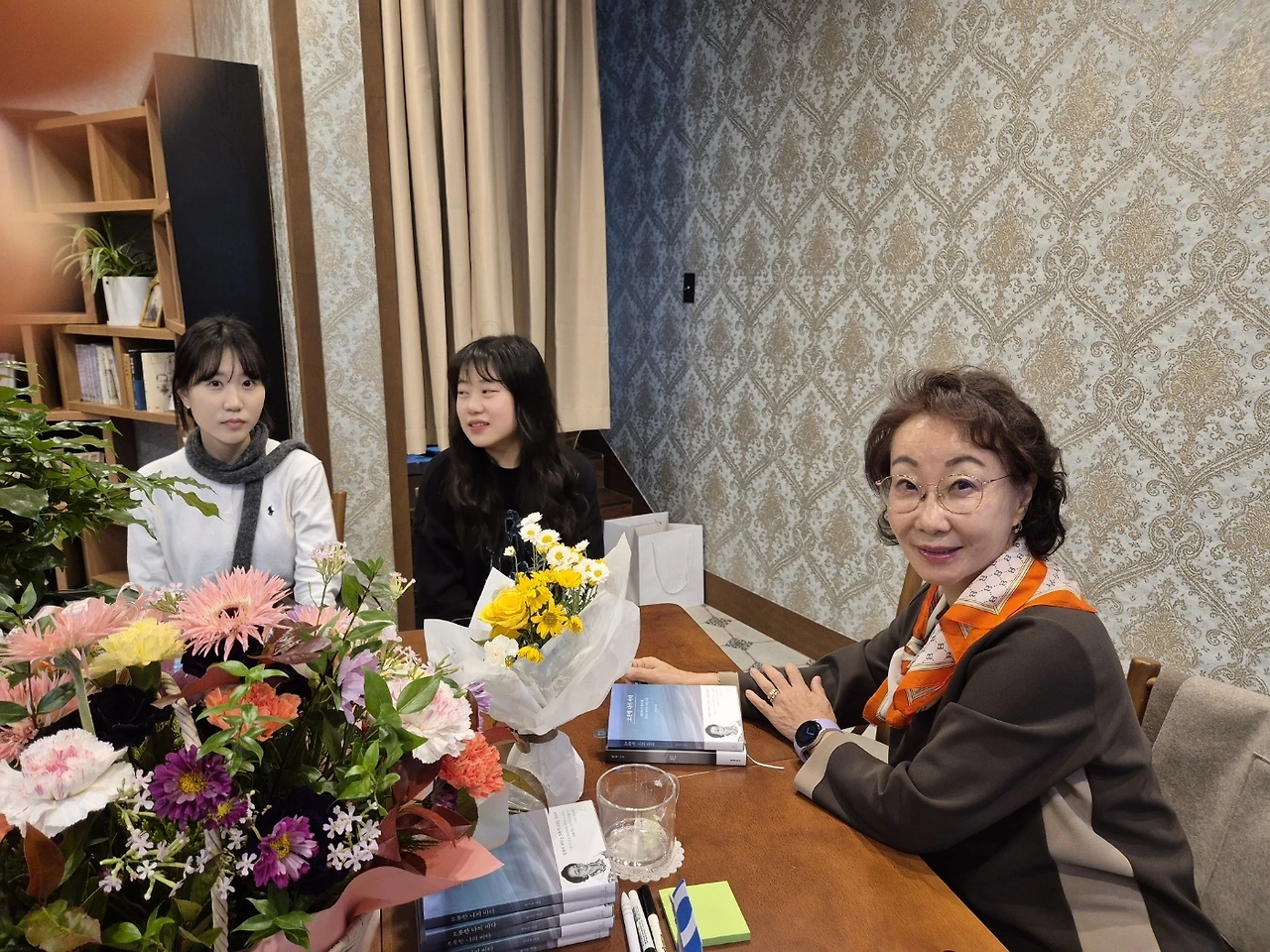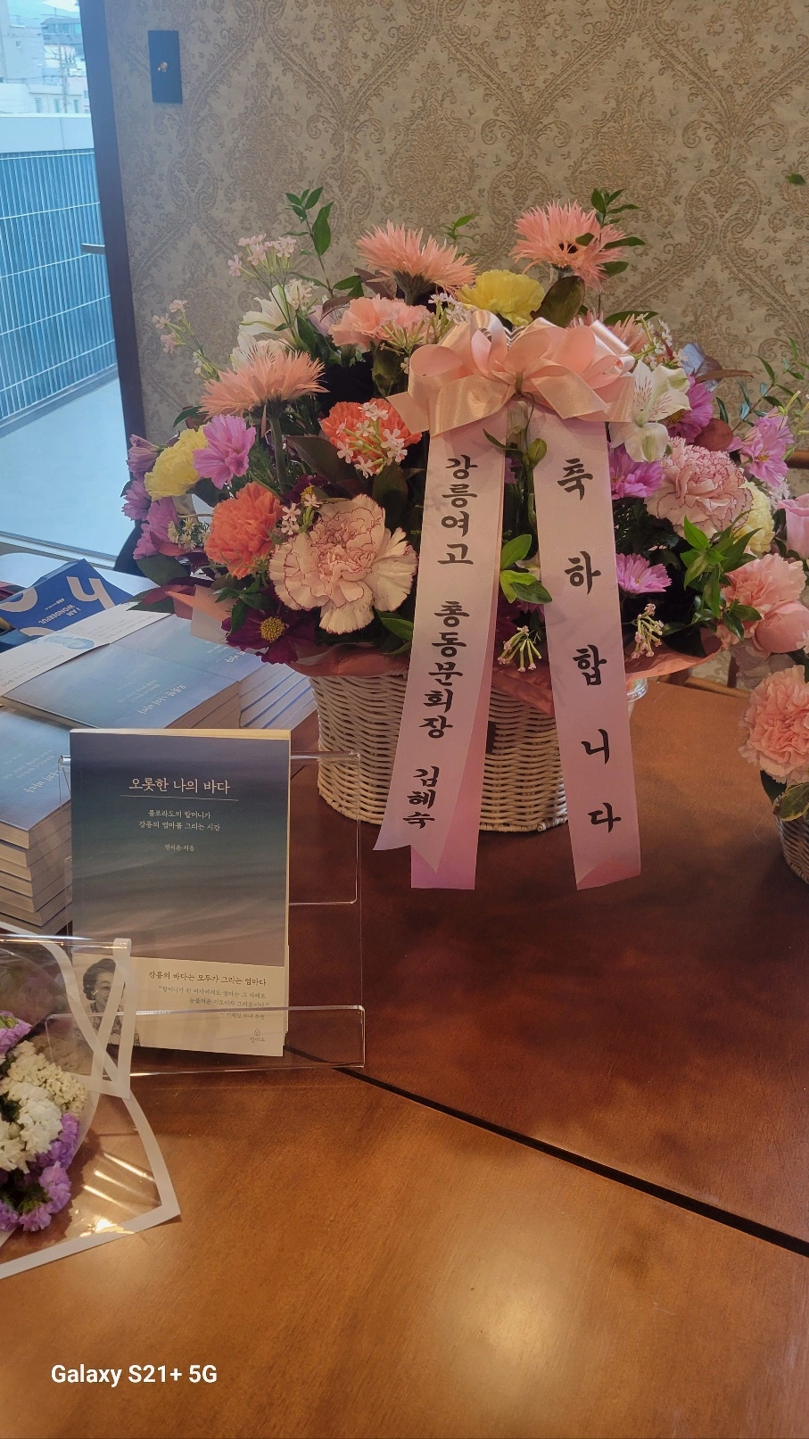 서점 안에는 빵 굽는 냄새와 짙은 커피 향이 잘 어우러지며 반긴다. 준비된 책상 위에는 꽃바구니들이 가득하다. 반갑고 고맙다. 시간이 되자 손님들은 하나 둘 계단 위로 올라왔다. 방문객 이름과 어떻게 알고 왔는지 물으며 책의 앞장에 생각나는 문구 하나를 쓰고 사인을 해서 건넨다. 말 그대로 <당신의 강릉>이 쏘는 이벤트. 무료로 책을 얻은 이들은 아래층에서 몇 권의 책을 더 구매하기도 하고, 앉아서 책을 읽기도 하고, 막 구운 빵과 커피를 마시며 수다를 떨기도 한다. 동두천에서 이 시간, 나를 만나기 위해 먼 길 마다하지 않고 찾아왔다는 글타래 님과 미국 생활을 오래 했다는 포남동의 어느 분. 솔향 강릉의 기자님. 성산골의 예비작가. 그리고 친구들. 어느 한 분도 놓칠 수 없었다. 짧은 대화 안에서도 우리는 통했고 마음은 깊은 곳에서부터 따뜻해졌다.