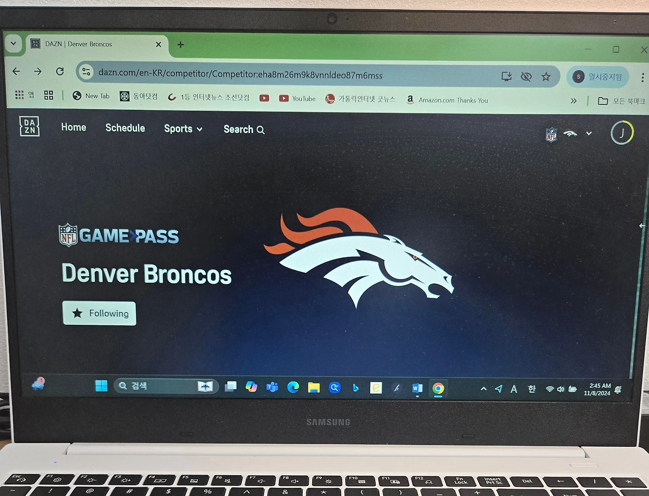 실시간으로 게임을 시청할 수 있는 프로그램을 구매했다. 한국에 있지만 나의 팀 브롱코스를 실시간 시청하는 것은 당연한 일이었다. 게임이 끝난 뒤 하이라이트만 유튜브로 보는 것은 성이 차지 않았다. 게임 내내 이어지는 에피소드를 실시간 봐야 게임을 같이 뛴 것 같은 느낌. 그야말로 선수와 팬이 일심동체가 되는 것 같다. 지난 일요일 게임만 하더라도 브롱코스의 쿼터백인 보 닉스(Bo Nix)가 뛰어가 엔드 존(End Zone)에서 공을 받아 터치다운(Touch Down). 그 순간을 실시간 보는 것은 엔돌핀이 확 돌게 하는 일이다. 쿼터백은 공을 던지기만 한다는 상식을 깨고 허를 찌르는 작전. 찐 팬들의 박수를 받기에 충분하다.