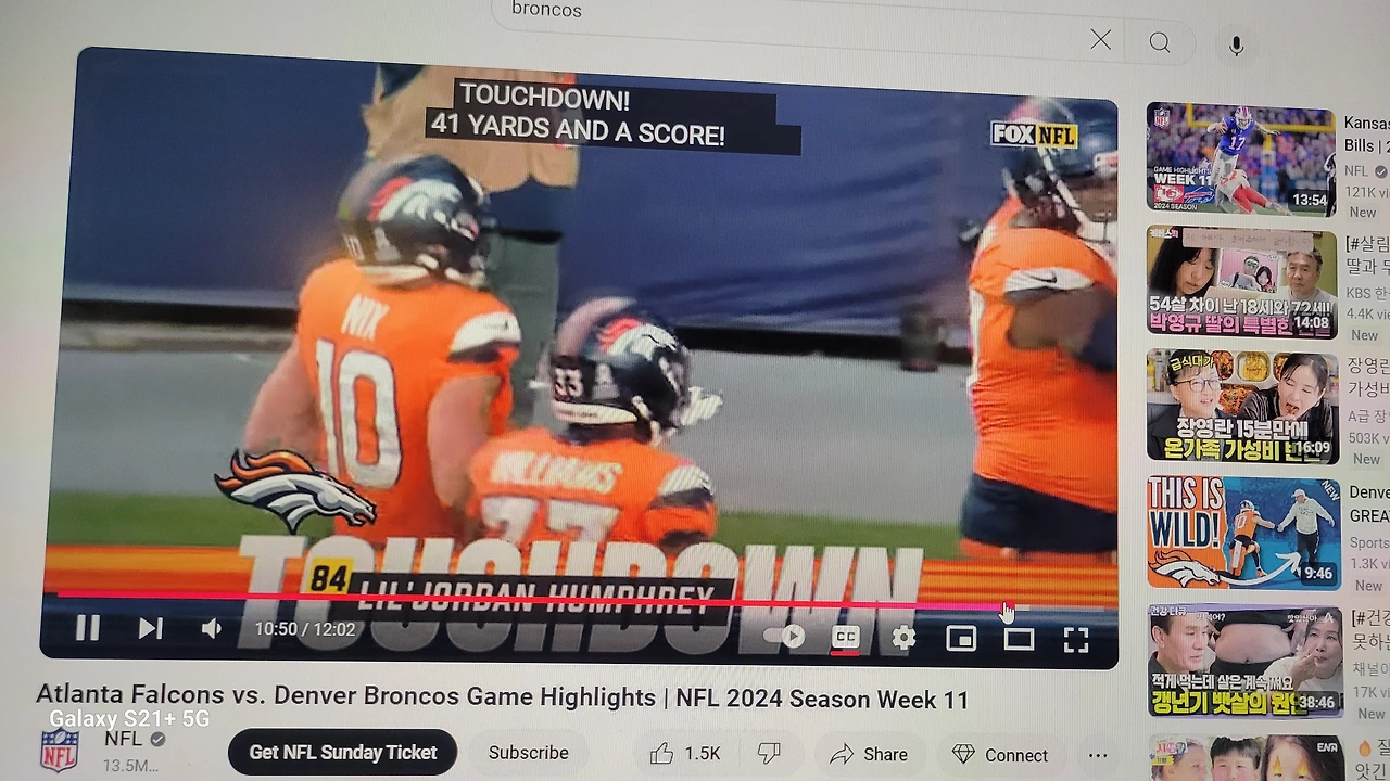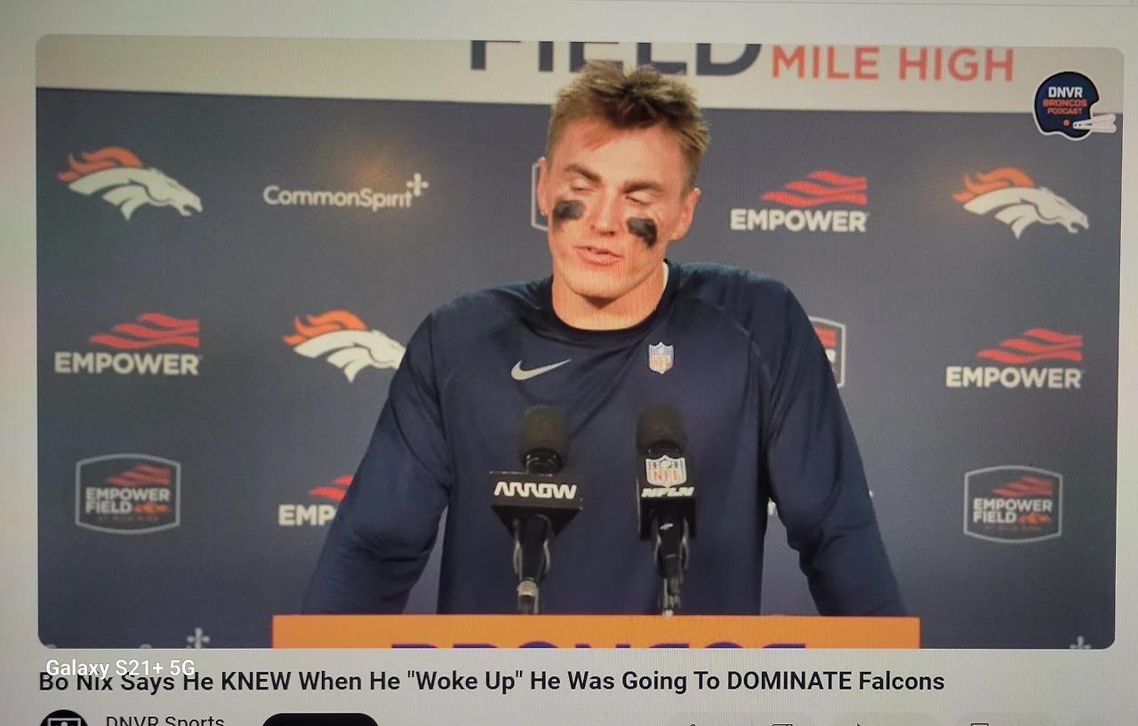 경기는 잘 풀렸다. 완승에 가까운 38:6. 이런 스코어를 근래에는 한 번도 본 적이 없다. 1초 남겨 놓고 너무 아깝게 졌던 지난 주일의 게임 이후, 심기 일전 하여 팀의 전력을 보강했다는 감독의 일갈. 햇빛 반사를 방지하기 위해 얼굴에 바른 검댕이가 흘러내린 채 인터뷰에 응하는 브롱코스의 쿼터백 보 닉스(Bo Nix). 환하게 웃으며 다른 선수들이 공을 잘 받아 주어 이길 수 있었다며 승리의 공을 팀 멤버들에게 돌린다. 보 닉스(Bo Nix)가 어쩌면 이번 시즌의 기량이 제일 뛰어난 신인 쿼터백이 될 수 있겠다는 유투버들의 리뷰를 보며 나도 엄지 척을 해 보인다.