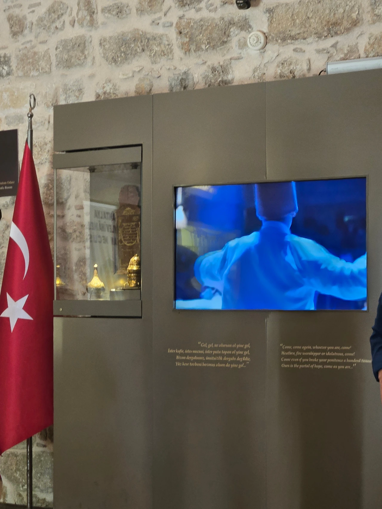 메블라나 박물관(Museum of Mevlana). 메블라나, 본명은 잘란루딘 루미. 13세기 이슬람 영적 신비주의자, 시인이며 철학자인 그를 기리는 박물관이다. 메블라나는 튀르키예어로 ‘우리의 스승’, 이라는 뜻이라고 한다. 루미를 존경하면서 만든 공간. 이슬람 신비주의는 춤을 종교로 승화시켰는데, 춤은 ‘세마’라고 불린다. 오른손을 위로(하늘로), 왼손은 아래로(땅으로) 한 채 계속 한 방향으로 도는 춤. 그렇게 계속 돌다 보면 어느 한순간 신과 만나게 된다는 춤이다. 우리도 한 방향으로 계속 돌다 보면 어지럽지 않은가? 그런 느낌을 접신하다고 믿는 것일까? 하는 생각이 훅 지나갔다. 박물관 한쪽의 화면에서는 무용수들이 계속 돌고 있다. 박물관은 소규모였지만 루미가 1273년 죽은 후, 그의 무덤이 이곳에 자리 잡으면서 점점 더 많은 추종자들이 이곳에 모이게 되었고 1926년부터 공식적으로 박물관이 되었단다. 박물관은 현재까지도 중요한 이슬람 성지로 꼽힌다. 안으로 들어가 방석 같은 데 앉아 역사 이야기를 듣는 시간도 있었는데, 이슬람 사원의 분위기가 무척 인상 적이었다. 안에는 최초의 코란이 백향목이라는 나무로 만든 통 속에 보관되어 있기도 하다. 내부는 이슬람 사원의 전통 문향들로 잘 가꾸어져 아름답다.