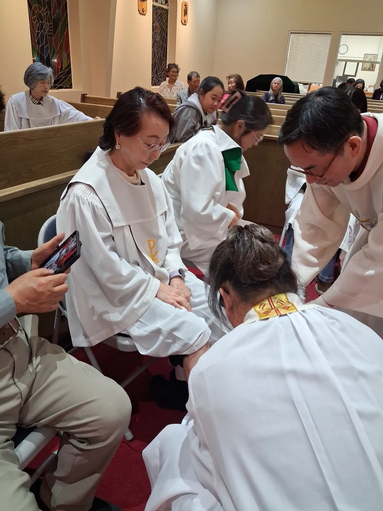 성삼일의 시작이다. 성 목요일 저녁 미사에서는 성체성사의 신비와 사랑의 계명을 묵상 함과 동시에, 주님께서 최후의 만찬에서 제자들의 발을 씻기신 일을 본받는 세족례를 시행한다. 겸손과 섬김, 서로 사랑하고 돕는 공동체의 실천을 몸소 보이는 예절. 12명의 제자를 나타내는 우리들, 세족례를 통해 용서와 회복이 되었기를. 이어 성체를 감실로 모시고 우리들은 다음 날 오후까지 깨어 기도하며 당신의 목숨까지 내주신 그분의 사랑을 묵상한다.