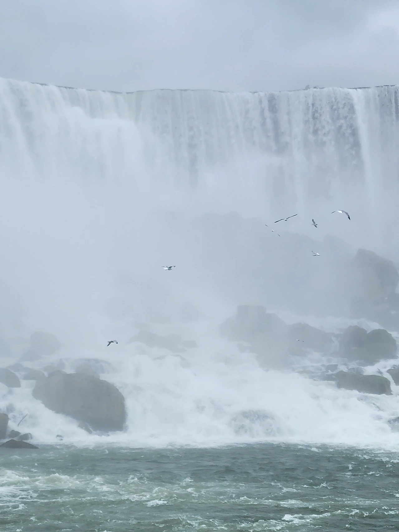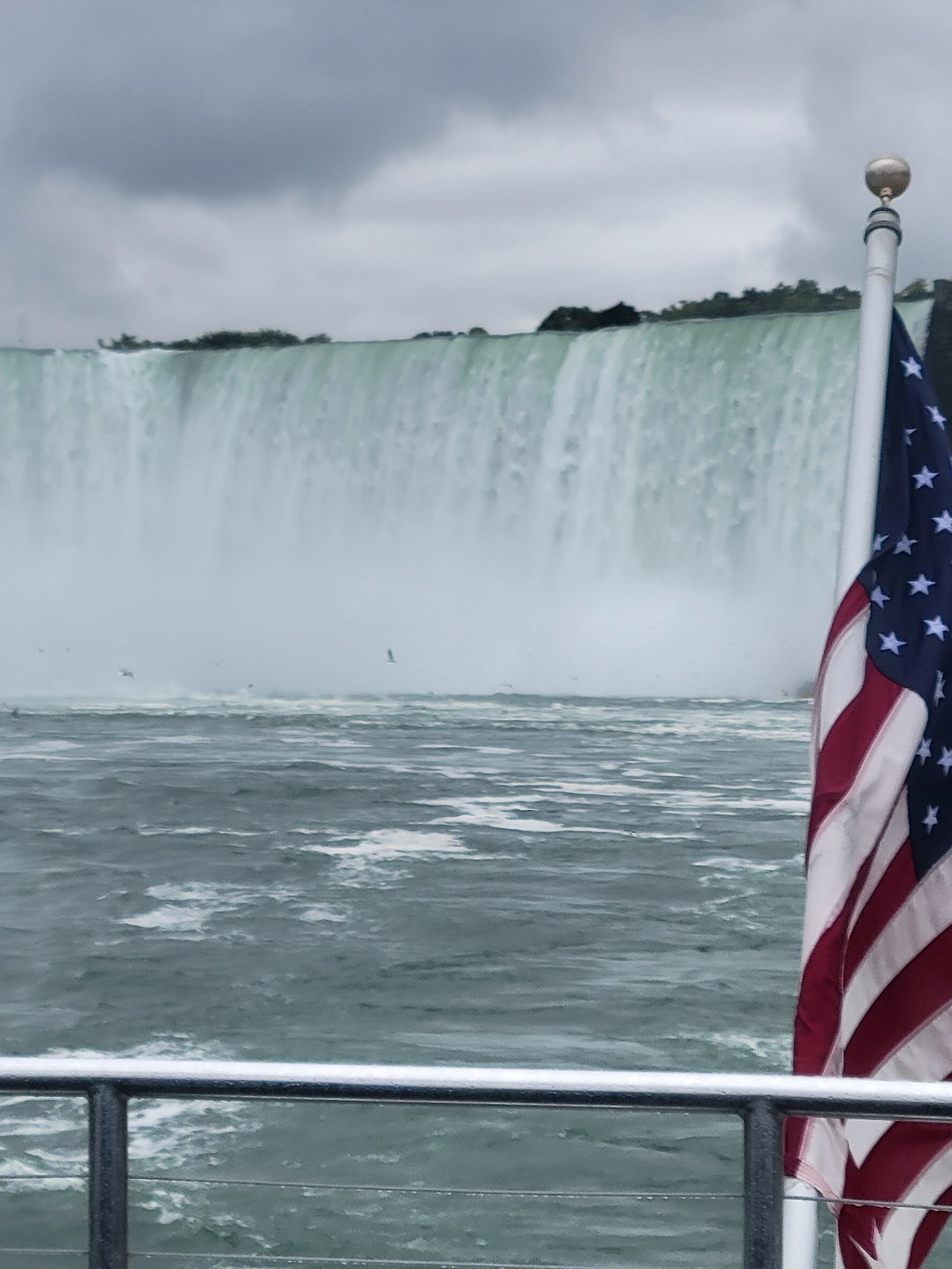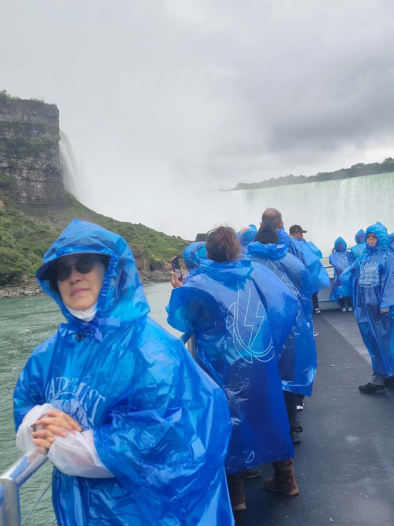 준비해 갔던 우비를 입고, 입구에서 나누어 주는 푸른색 얇은 우비를 덧입고 나이아가라 폭포 최전방으로 다가가는 보트를 탔다. 나이아가라 폭포는 국립공원 지역이며 세계적으로 유명한 관광지이다. 뉴욕 쪽과 캐나다 쪽에서 관광을 할 수 있는데, 내가 예매했던 표는 공교롭게도 미국 쪽에서 들어가는 보트였고 그렇게 불친절하고 거친 미국 경찰이 있는 국경을 통과해야 했다. 주의해서 예매를 한다고 했는데 나의 큰 실수였다. 또 다른 일들이 꼬여 있을까 봐 은근 걱정이 되었다. 미국 생활 38년 만에 와 보는 곳이어서 기대에 잔뜩 부풀었다. 친구 덕에 와 보는 세계의 폭포. 한마디로 장관이었다.