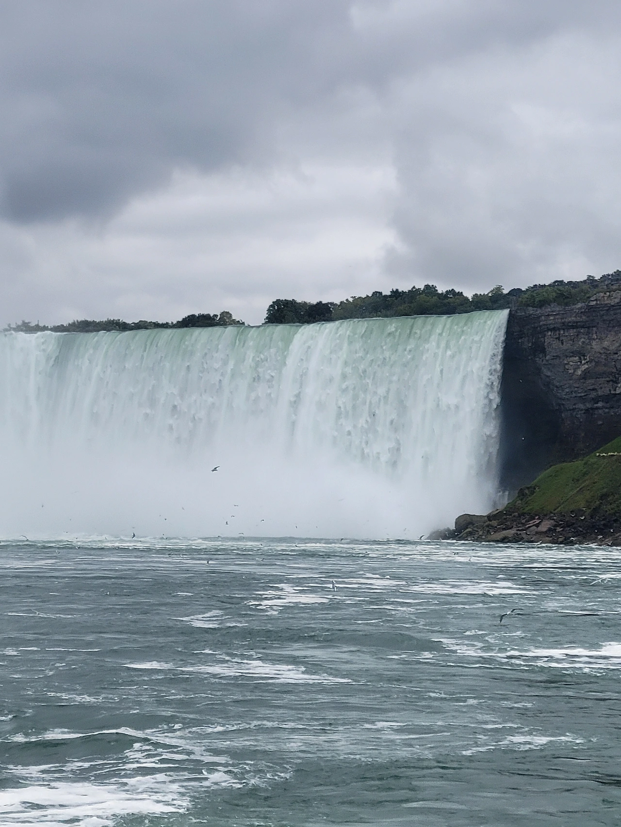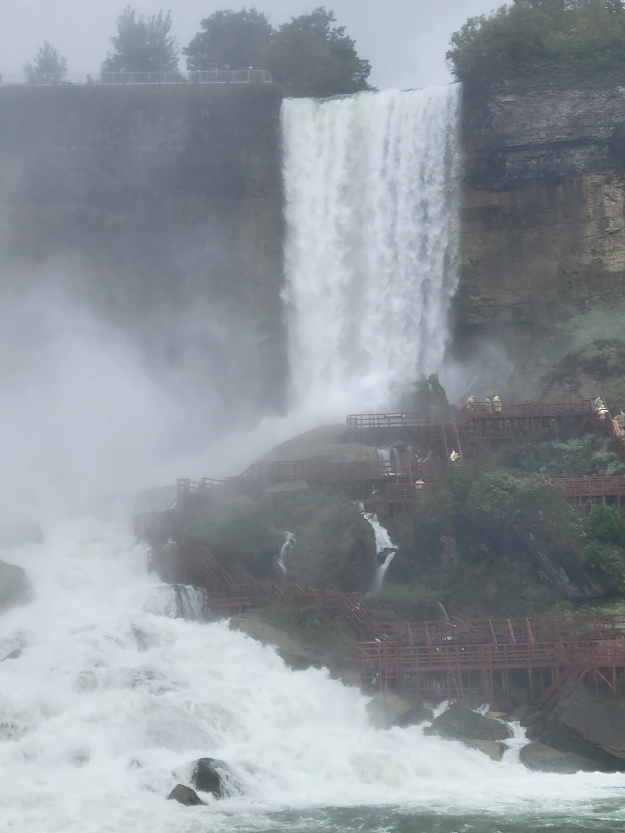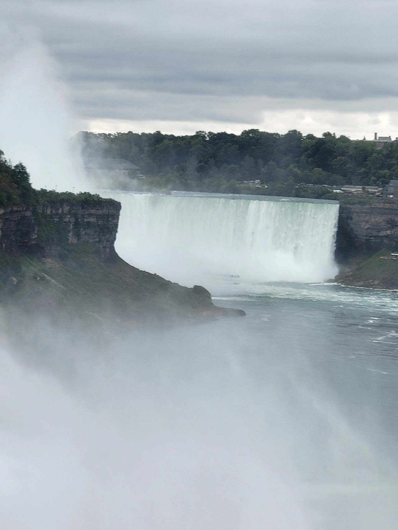 준비해 갔던 우비를 입고, 입구에서 나누어 주는 푸른색 얇은 우비를 덧입고 나이아가라 폭포 최전방으로 다가가는 보트를 탔다. 나이아가라 폭포는 국립공원 지역이며 세계적으로 유명한 관광지이다. 뉴욕 쪽과 캐나다 쪽에서 관광을 할 수 있는데, 내가 예매했던 표는 공교롭게도 미국 쪽에서 들어가는 보트였고 그렇게 불친절하고 거친 미국 경찰이 있는 국경을 통과해야 했다. 주의해서 예매를 한다고 했는데 나의 큰 실수였다. 또 다른 일들이 꼬여 있을까 봐 은근 걱정이 되었다. 미국 생활 38년 만에 와 보는 곳이어서 기대에 잔뜩 부풀었다. 친구 덕에 와 보는 세계의 폭포. 한마디로 장관이었다.