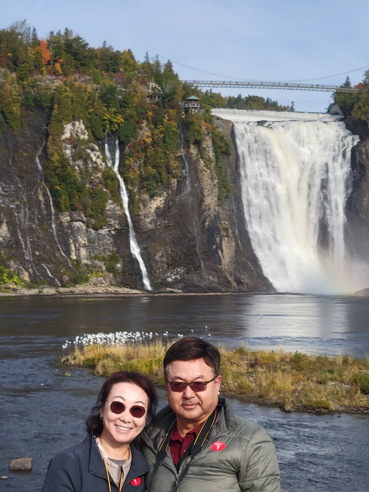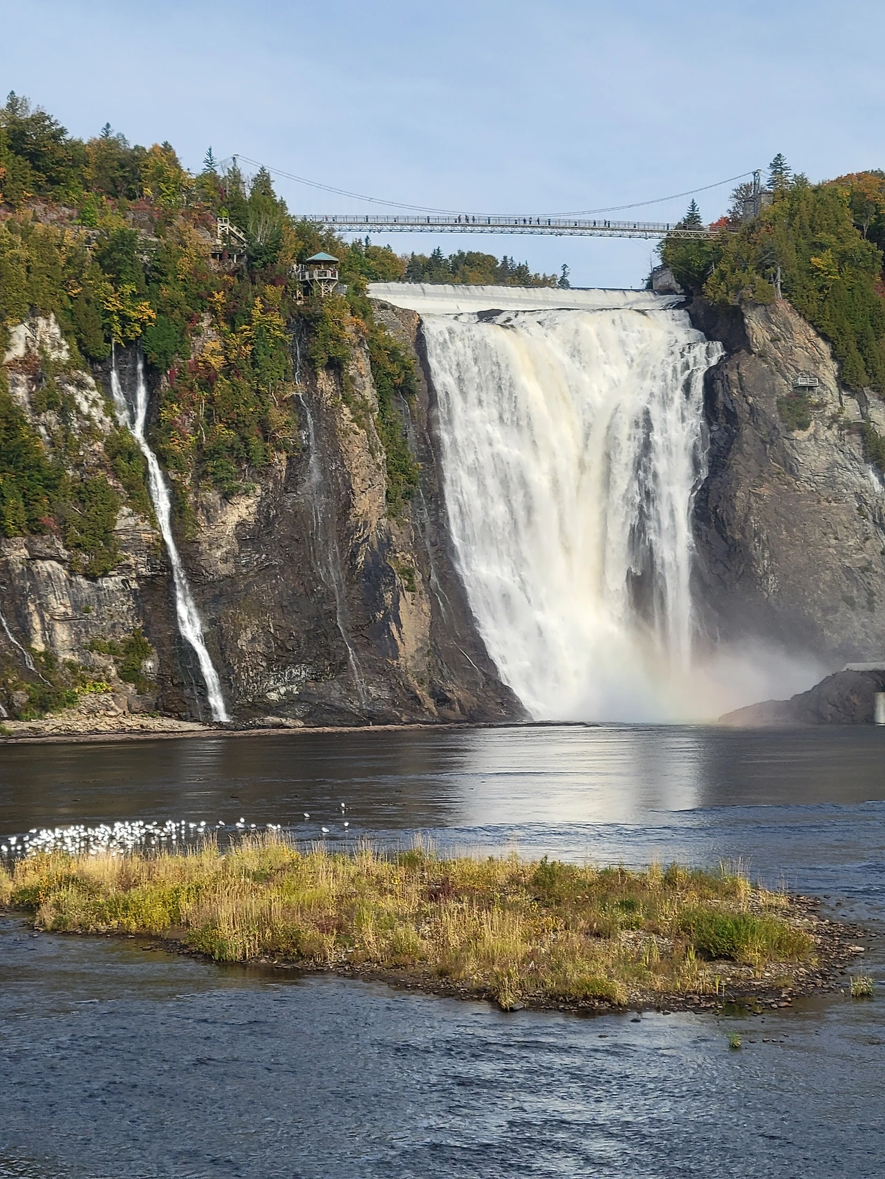 이어 몽모렌시 폭포(La chute Montmorency). 나이아가라를 보고 와서 일까. 폭포의 크기는 그리 크지 않았다. 하지만 높이는 나이아가라의 1.5배쯤 된다는 설명이었다. 멀리 폭포 위 다리로 올라갈 수 있는 계단이 보였다. 걷는 것을 좋아하는 친구와 나는, 저기까지 걸을까 했지만 참으라는 남편들의 말과 또 시간이 꽤 많이 걸릴 것 같아 가지 않기로 했다.