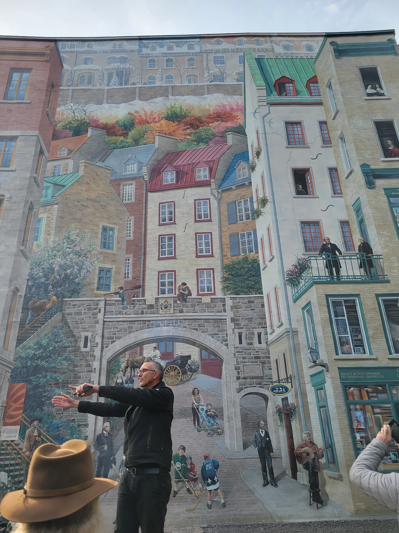 관광은 아래쪽 타운(Lower town)부터 시작했다. 세인트 로렌스 강을 타고 이어져 있는 동화 같은 마을이 모여 있었다. 어느 쪽을 쳐다봐도 알록달록한 창문들이 그림엽서처럼 옛 유럽 자취들을 고스란히 간직했다. 이어지는 프레스코 벽화. 5층 건물에 실물 크기의 사람들의 특성을 살려 넣은 벽화였다.