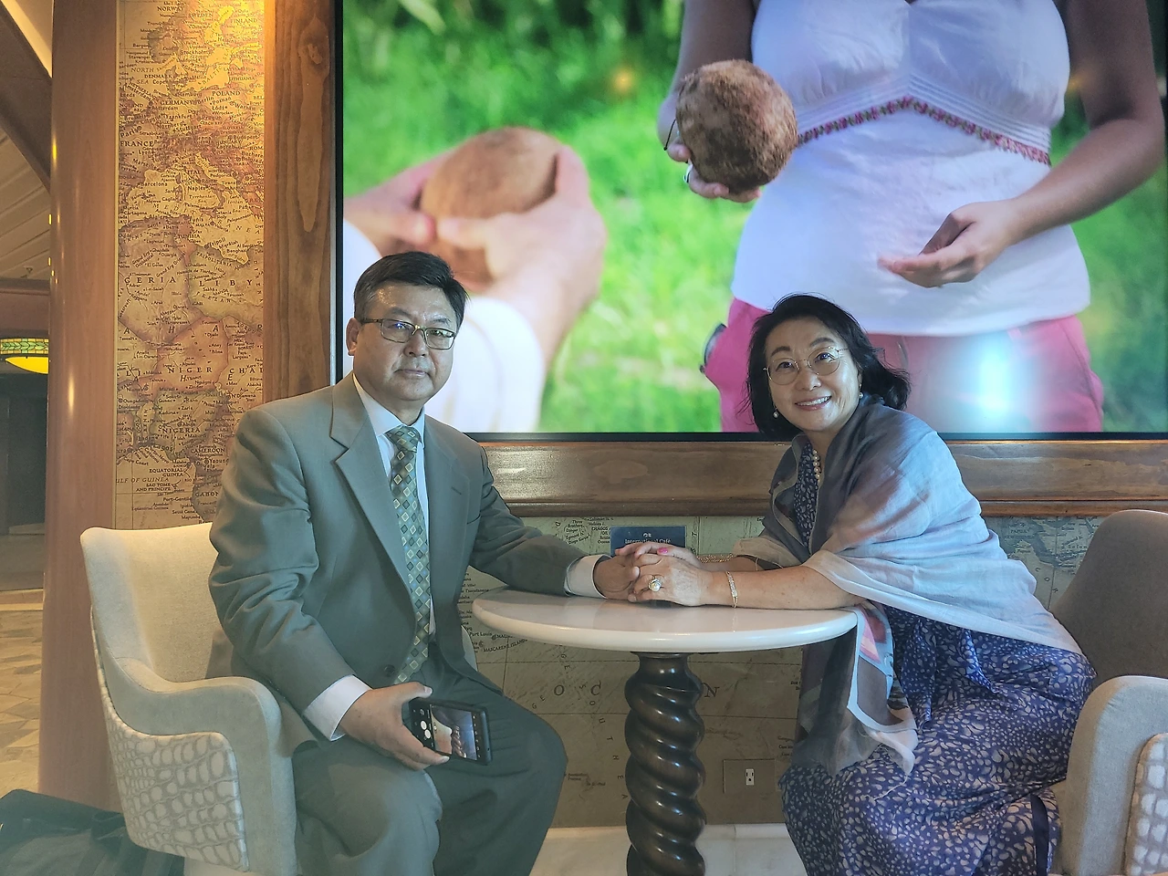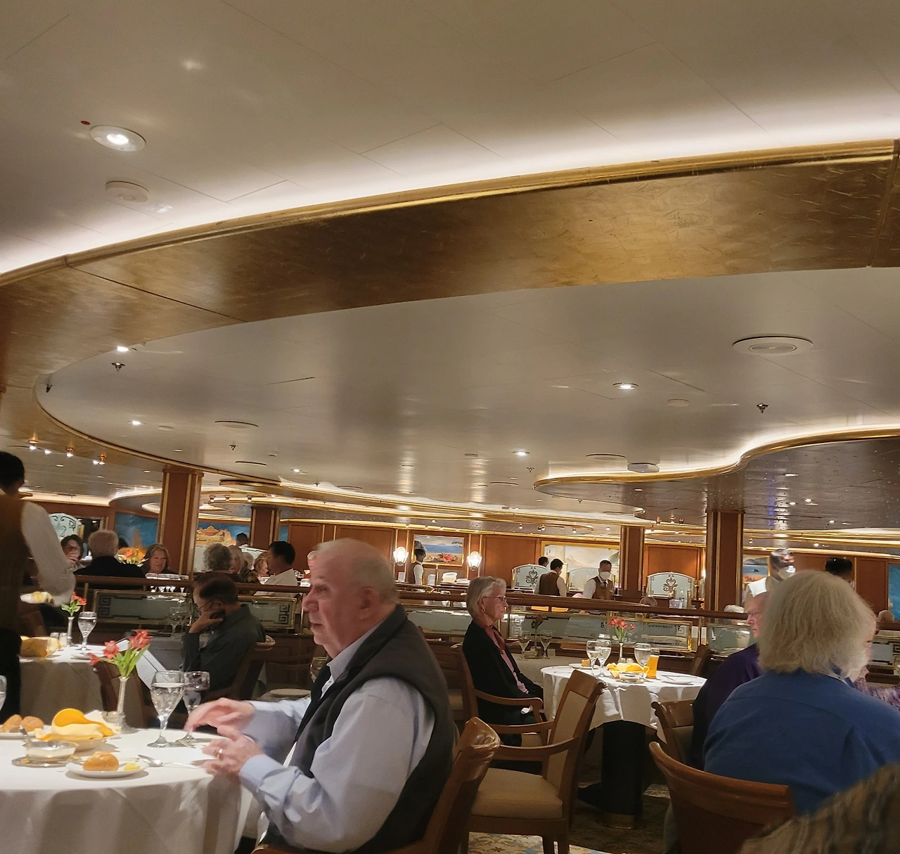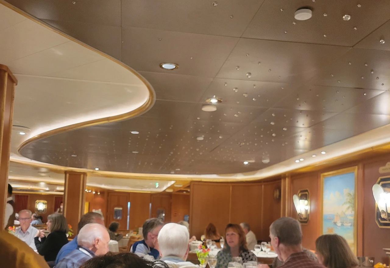 남편들은 우리들에게 티를 배달해주고, 배를 몇 바퀴 돌고, 카지노를 기웃거리다가 ‘하늘 아래 영화관’이라는 대형 스크린 아래에 앉아 영화 감상을 한단다. 마침 ‘보헤미안 랩소디’를 상영하고 있어 맥주를 마시며, 커다란 실외용 모포를 겹으로 쓰고 영화 감상을 했단다. 추억을 불러왔던 음악 영화를 즐기는 사이, 친구와 나는 ‘자고 또 자고’ 했다. 다행히 오후가 되자 몸 컨디션은 나아졌고, 저녁 먹을 식당은 정장을 입어야 해서 약간의 치장을 해야 했다.