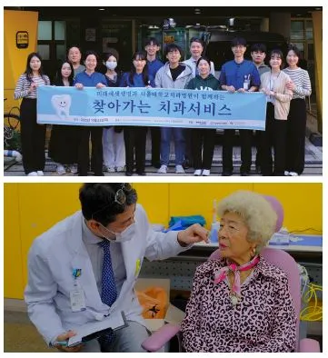 서울대학교치과병원은 2025년 9월(경기 부천), 10월(서울 강북)에 독거노인을 위한 '찾아가는 치과서비스' 를 실시하였다. 서울대학교치과병원은 수도권 지역 독거노인을 대상으로 현장에서 구강검진과 치과 치료를 제공하며, 올 한해 284명에게 밝은 미소를 찾아주는 등 의료 사각지대 해소를 위한 대표적인 민관협력형 사회공헌사업을 실시하고 있다.