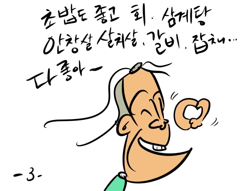 나이가 들어서 인지 몸에 좋은 걸로 이것저것 생각날 때가 많다 물론 오히려 입맛이 없는 분들도 많긴 하지만 하여튼 양을 떠나 여러 가지 맛보고 싶은 게 많다는 거다 그렇다고 와이프에게 이것저것 요것조것 일일이 얘기할 수도 없고 냉장고에 다 있으니 챙겨 먹으라 해도 귀찮고 그나마 차려주는 밥은 고마운 거다 어느 땐 와이프도 귀찮은지 대충 한 끼 때우길 바라는 눈치도 보낸다 그럴 땐 한 번씩 나갔다 오던지 라면이 당긴다며 직접 끓여 먹으라 삼시 세끼 꼬박꼬박 정식으로 드시려 하지 말고 하기야 능력 되는 남편들이야 당당히 밥상을 받겠지만 능력도 안되면서 찬밥 더운밥 가릴 수는 없는 것, 차려주면 그냥 늘 감사합니다 고맙습니다 하고 또 가끔씩은 오늘 식사 준비는 내가 해 볼게 이러면서 없는 솜씨 한번 부려 뭔가에 도전해 보면서 그렇게 살아가길 바랍니다. 지금 휴대폰 창을 열면 수많은 레시피들이 쏟아지고 있으니까요(나뿐 사람들 뭘 그리 만들어 가지고 와이프 눈높이를 한껏 올려놓고 주방으로 자꾸 내 몰게 하냐 ㅠㅠ)