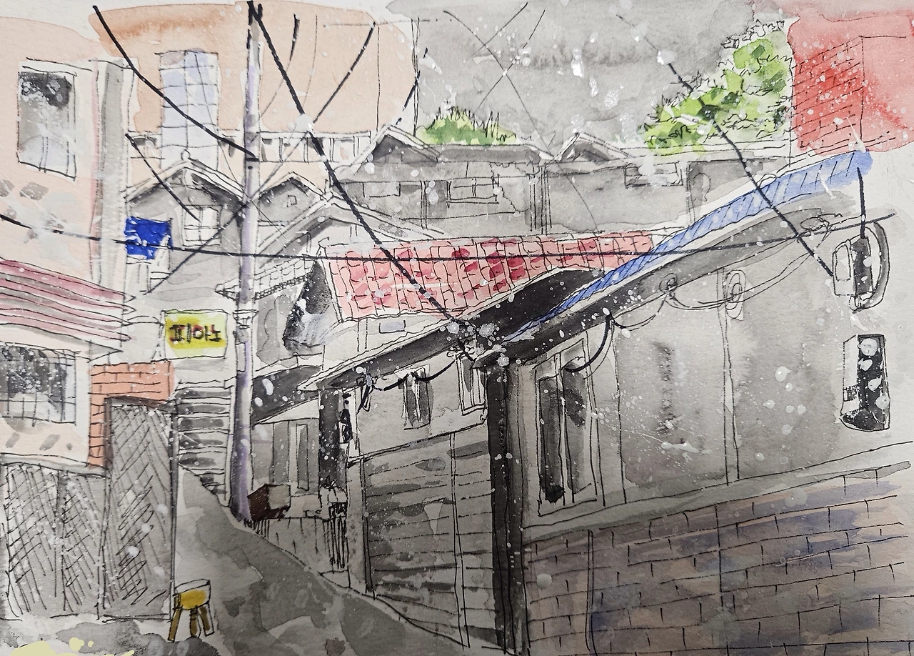 골목 안 허름한 집들...**