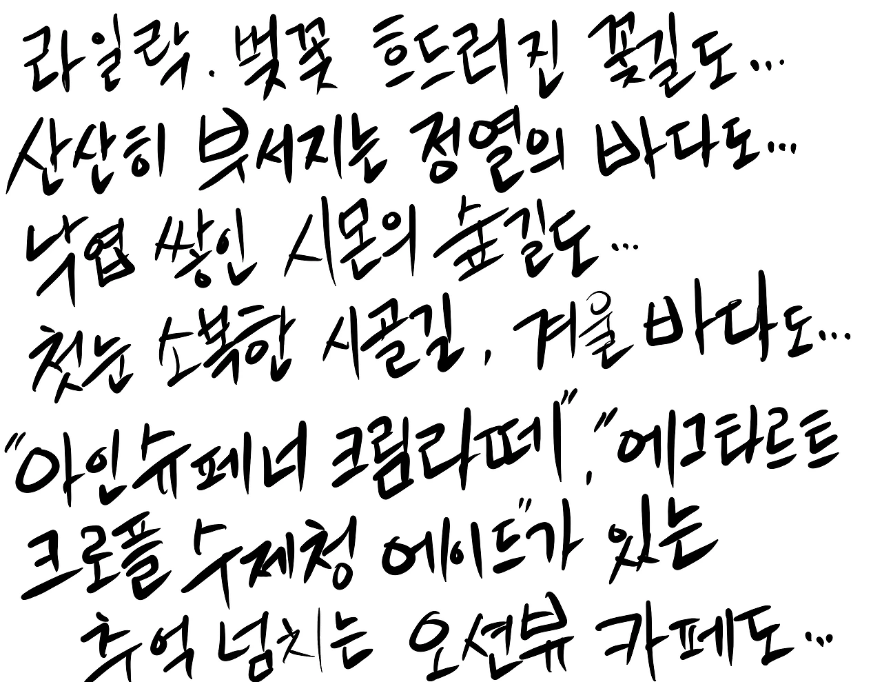 오늘도 추억의 빚장을 잠급니다 여기서...