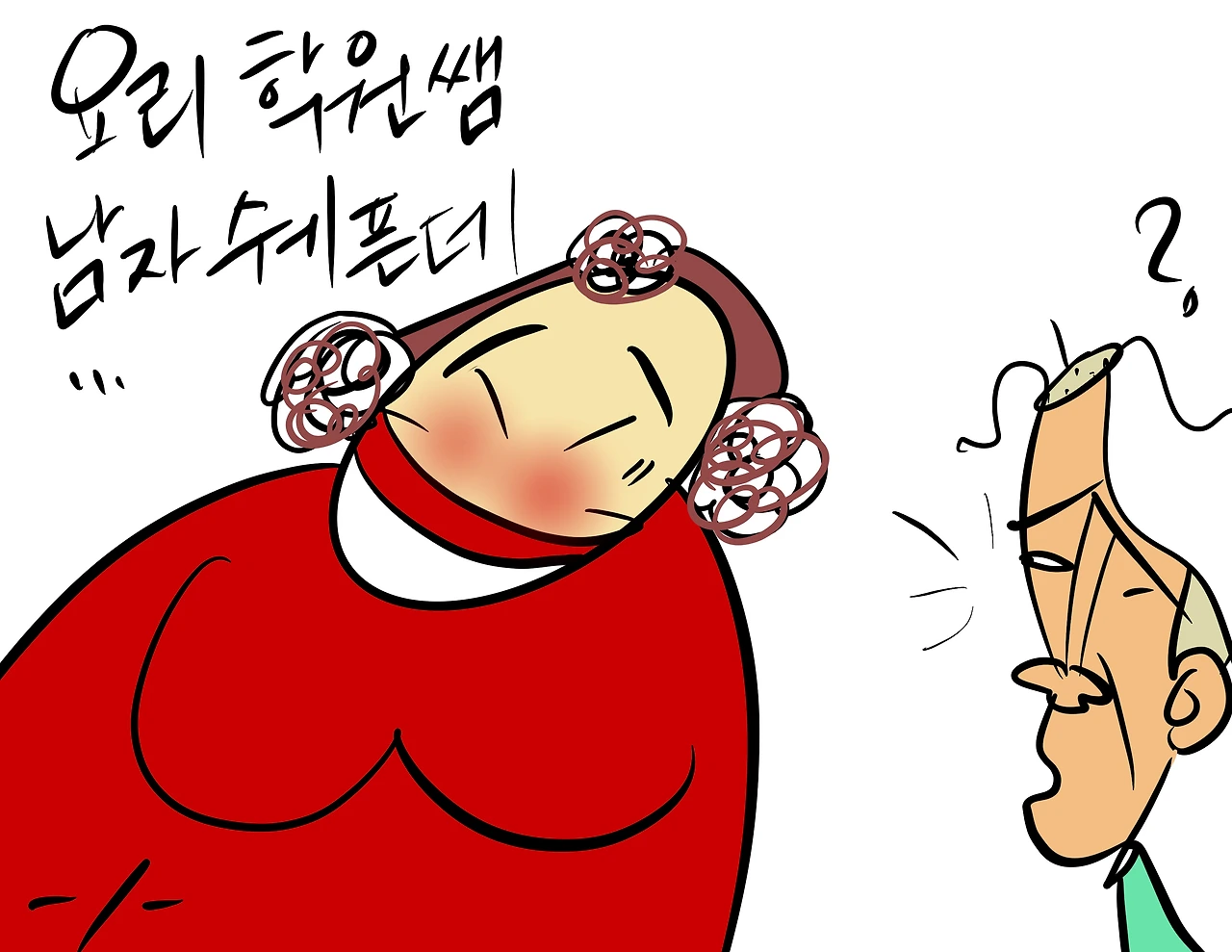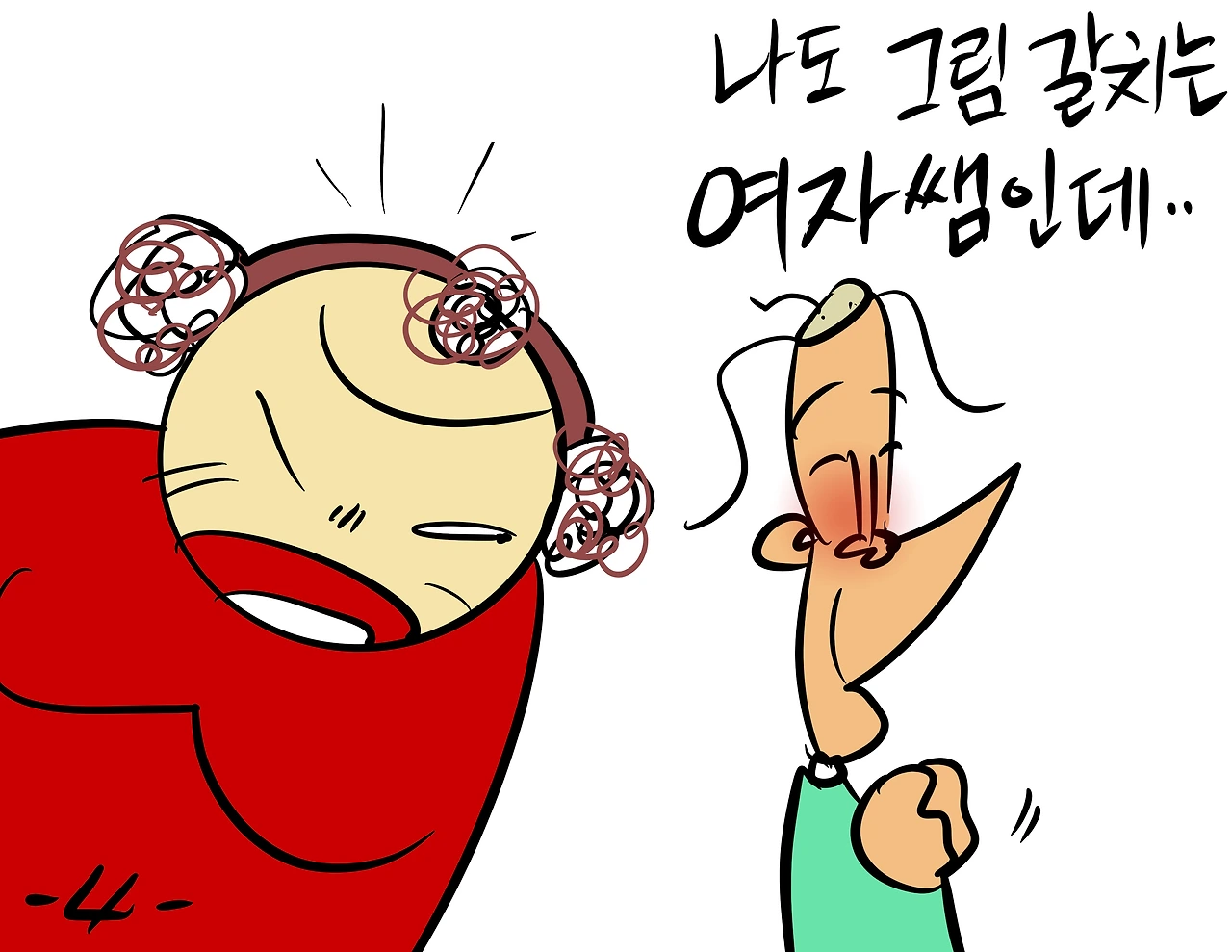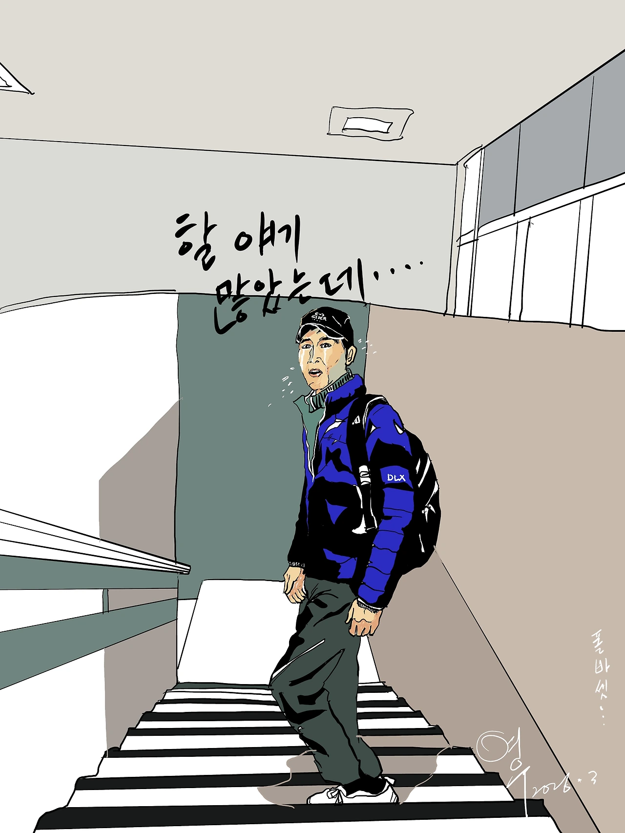 멤버 5명이 아줌마 4, 아저씨 1인데 왕초보 두 명이 불참했다 날짜를 잘 못 알았단다 그 말에 섭섭하다며 패드로 그린 이 그림을 올렸더니