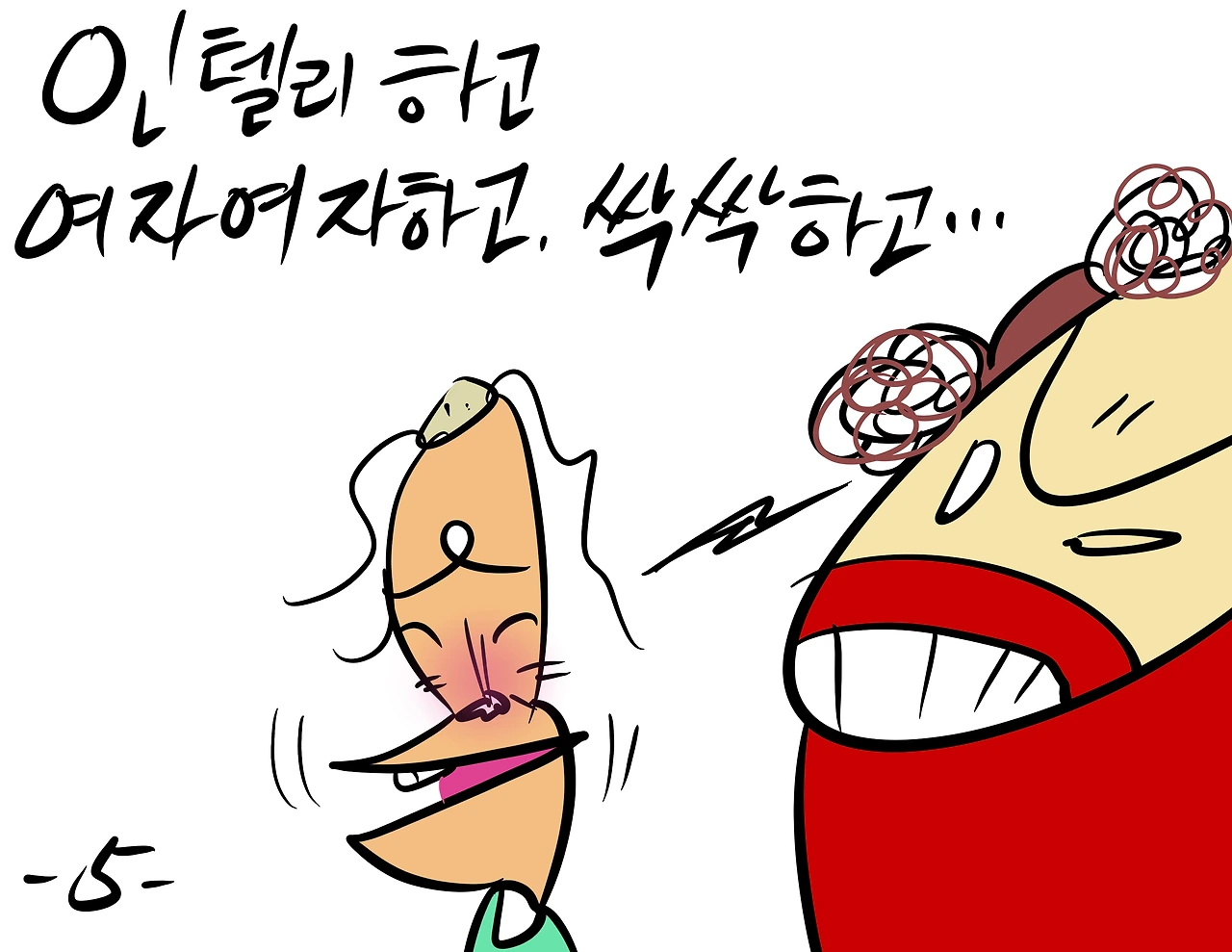 여기서 한 가지 답이 있다 집에서 새는 바가지가 밖에서는 새지 않을 수도 있다 그것은 본인의 단점에 대해 집에서 충분히 교육되었기 때문에 밖에서는 조심하게 된다는 거다 학습의 효과, 암튼 집안에서의 잔소리는 돈 주고 배울 수 없는 학습의 효과가 될 수 있으니 그저 와이프의 잔소리를 늘 감사한 마음으로 받아들이길 바랍니다 근데 난 와이프의 단점을 지적하고 잔소리하는 게 왜 안될까? 고쳐줘야 하지 않나? 왜 나는 듣고만 있어야 하나? 잔소리 좀 하까? 어디서 잘못된 건지는 모르지만 하여튼