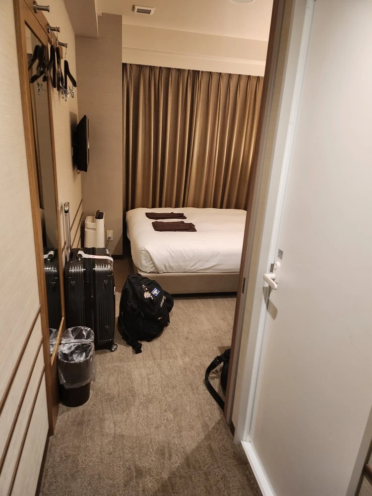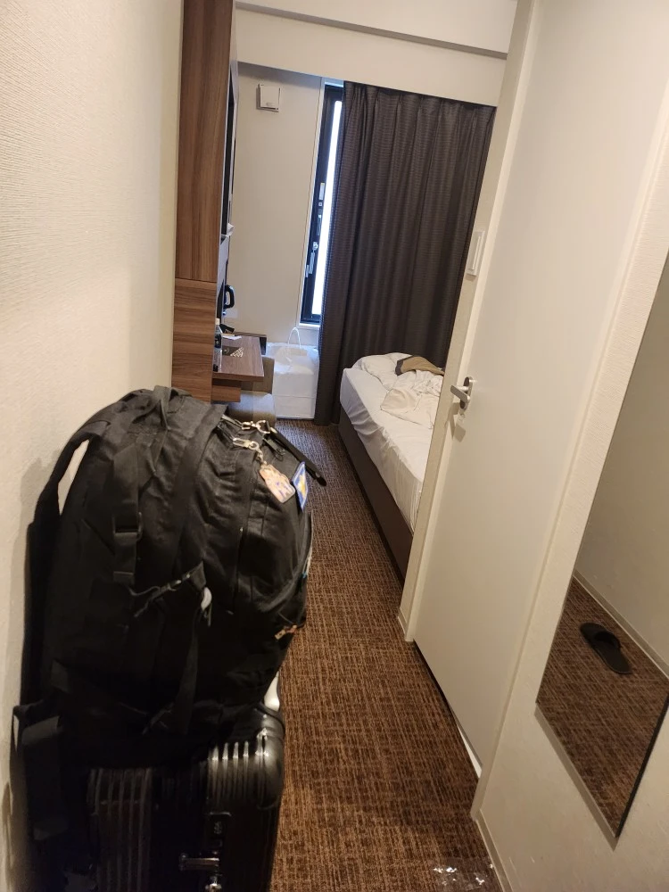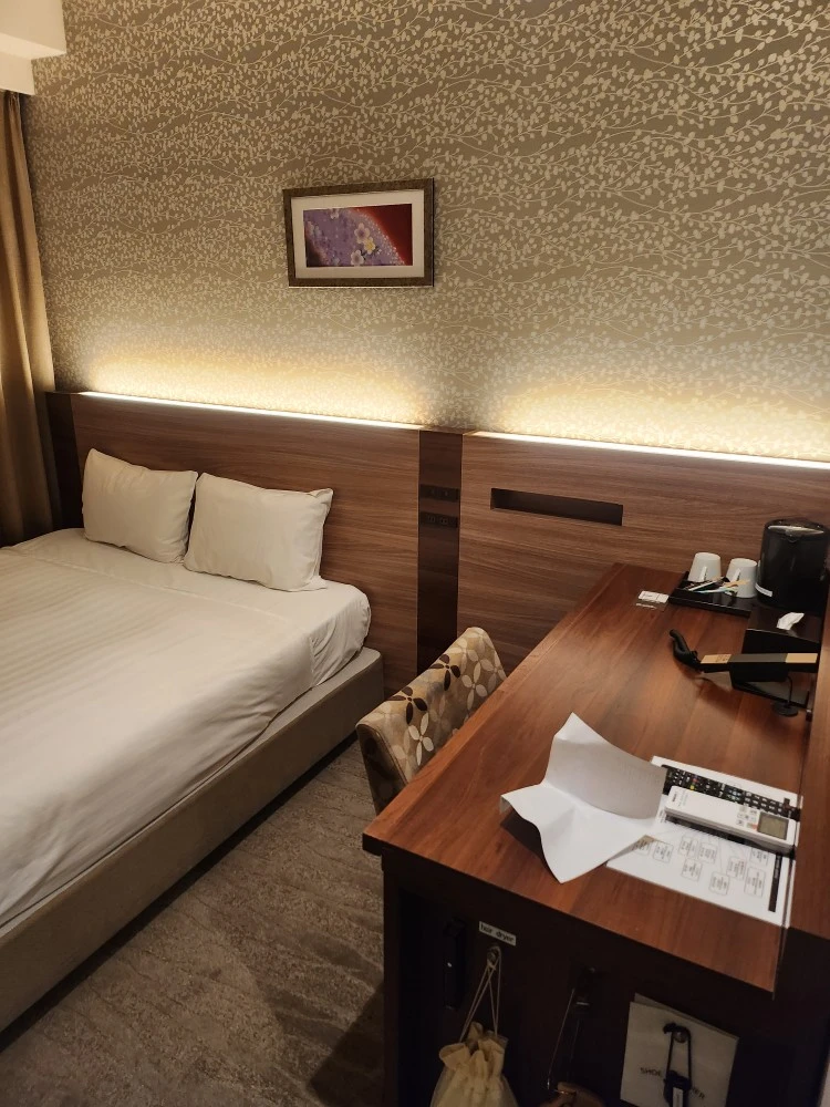 오사카부립중앙도서관에서 교세라 돔을 바로 가는 것이 일정이나 루트상 가장 최적이였다. 하지만, 나는 그런 선택을 하지는 않았다. 왜냐하면, 짐을 호텔에 맡기면서 가방에서 크로스백을 빼서 책과 테블릿을 챙기긴했으나 내가 우산을 맡기지 못해 해가 쨍쨍한 날 우산을 계속들고 다녔기 때문이다. 오사카시립중앙도서관을 둘러보고 숙소까지 걸어가면 딱 15시가 되는 타이밍이여서 숙소에서 체크인하고 잠시 쉬고 우산도 갖다 놓을겸 숙소로 복귀했다. 숙소는 내가 경험했던 일본의 숙소들 중 가장 컸다. 가격차이는 크게 나지는 않았지만 책상이 은근 넓었고 방의 공간도 어느정도 되어 팔굽혀펴기를 하기에는 괜찮은 정도였다. 방의 인테리어와 구조를 보고 나도 2028년에 전역하고 대학원 진학 후, 자취방을 이런식으로 꾸며볼까라는 생각이 들정도로 이번 숙소는 아주 마음에 들었다.