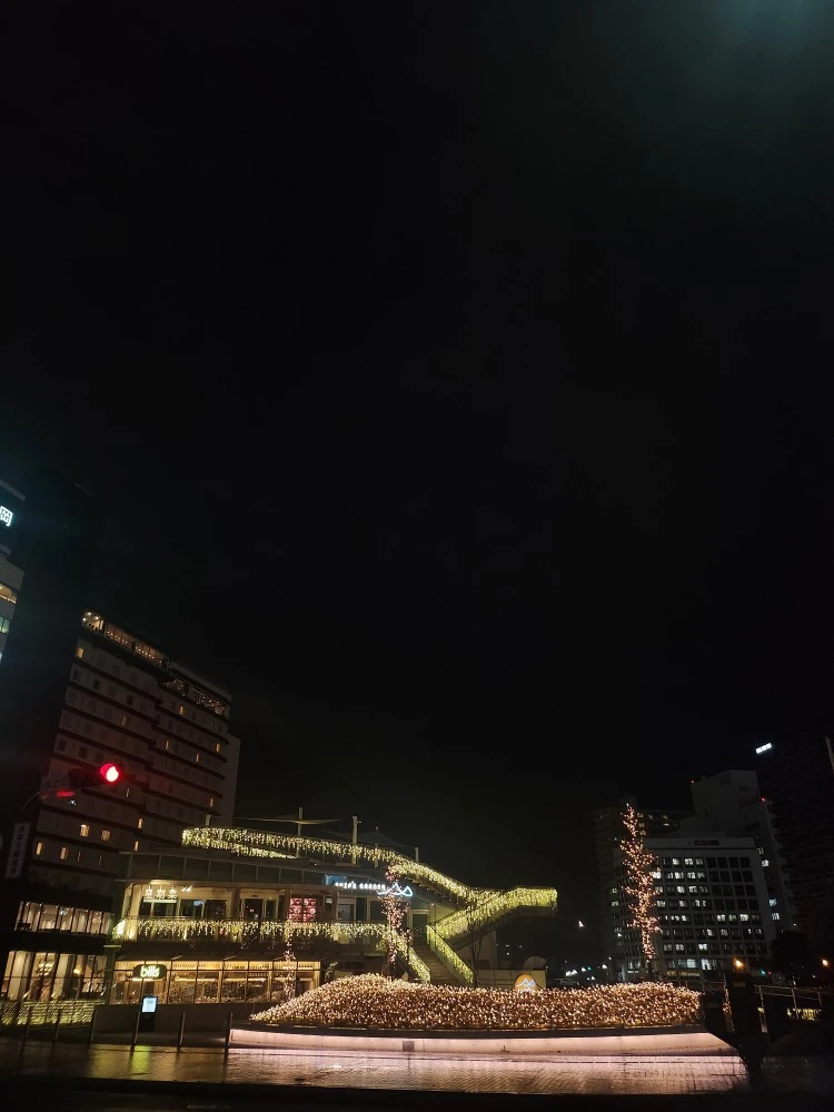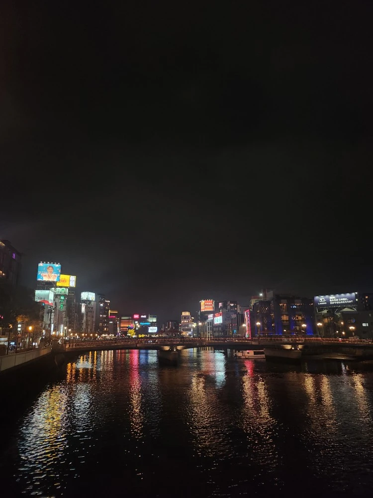 나카스카와바타역에서 텐진역까지는 그냥 일자로 쭉 걸어가면 되었기에 돌아가는데 길을 검색해면서 가야할 문제는 없었다. 낮에 지나갔던 길을 다시 그대로 돌아가면 됐기 때문이다. 전에도 서술한 바와 같이 일본에서의 낮과 밤의 차이는 매우 크다. 낮에는 일본하면 떠오르는 푸른 하늘과 평화롭고 여유로운 느낌이 들지만, 밤에는 무언가 유흥을 즐기기 좋은 느낌이 들기 때문이다.