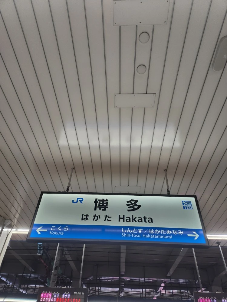 신칸센을 타기 위해 하카타역으로 왔다. 내가 예약한 교토행 신칸센은 11시 35분 출발이였다. 내가 하카타역에 도착한 시각은 10시16분쯤이였다. 촉박하게 오는 것 보다는 일찍 와서 여유럽게 기다리는 것이 낫기 때문에 나는 신칸센 개찰구 앞에 위치한 시애틀 카페에서 아이스 아메리카노를 주문하고 후쿠오카에서의 추억을 한번 더 회상했다. 그러다 얼마가지 않아 인규에게 보이스톡이 왔고 인규에게 후쿠오카썰을 짤막하게 풀었다. 썰을 풀고 보이스톡을 끊고 난 뒤, 시간을 보니 벌써 10시 50분이였다. 대화가 잘 되는 사람과 대화를 하면 확실히 시간이 빠르게 가는 것 같다. 한 20분 정도는 오다 노부나가의 역사와 교토에서 볼 거리들이 무엇이 있는지, 숙소 근처는 어떤 곳인지에 대한 정보를 탐색했다. 그리고 11시 15분쯤 내가 탈 신칸센의 플랫폼으로 가서 서서 기다렸다. 탑승과정이 좀 신기했다. 신칸센이 승강장에 온 시각은 11시 20~25분쯤이였다. 사람들이 내린 뒤, 바로 타지는 못하고 청소해주시는 분들이 먼저 탑승하신 후 10분 정도 지난 후 청소해주시는 분들이 나오면 그때 탑승하는 형식이였다. 나는 내 자리인 4호차 4번 E자리로 가서 앉았다. 그리고 신칸센은 출발했다. 여기서 내가 간과한 사실이 있다. 타기 전에 무언가를 먹지 않고 탄 것이다. 교토역 도착 시각은 14시 25분이였는데 공복에 아이스 아메리카노 하나만 마신 나는 정말 배고파서 미치는 줄 알았다.