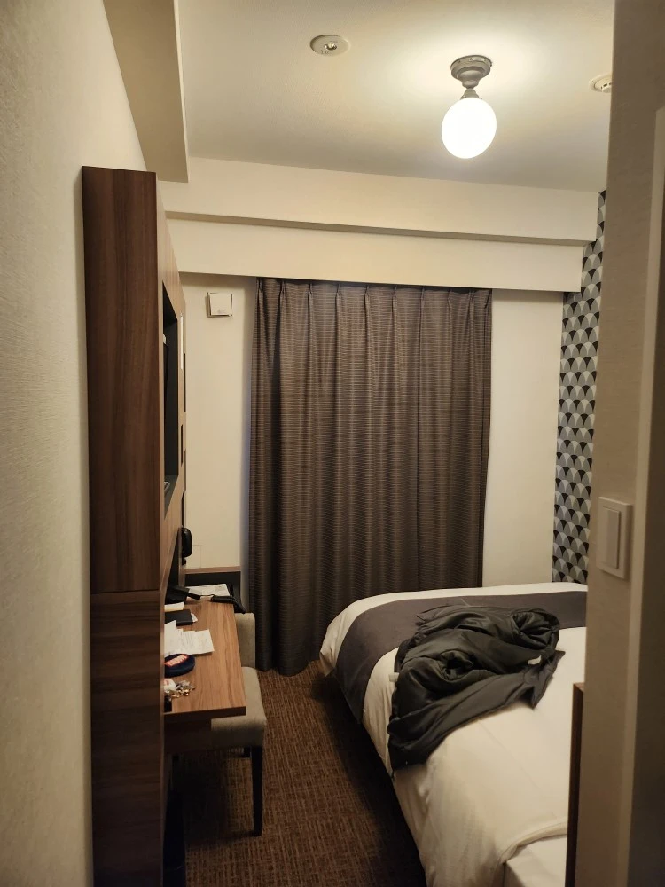 숙소에 들어와서 체크인을 했다. 아라토 때와 가격차이가 그렇게 크지 않았는데 분위기가 정반대였다. 체크인을 끝내고 내 방인 902호로 들어왔다. 아라토의 복도와 방, 시조오미야의 복도와 방을 찍어서 친구 및 형들에게 보내주자 '신분 상승했네.'라는 반응을 많이 들었다. 아주 적절한 표현이라고 생각된다. 창문 여는 방법을 몰라서 꽤 애를 먹었었다. 그래도 다행히 방법을 찾아서 창문을 열였는데 완전히 열리지 않고 측면으로만 공기가 통하게 되는 창문이였다. 신선한 경험을 준 창문이였다. 방은 확실히 신식이였고 화장실도 아라토에 비해 넓었다. 욕조가 좀 넓어져서 좋았다. 방에 짐을 풀고 점심시간에서 꽤 늦었지만 밥을 먹으러 나왔다.
