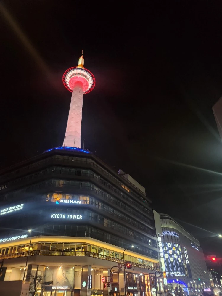 길을 따라 쭉 걷다보니 교토예술상업대학이 보였다. 대학건물이 박물관처럼 생겨있었는데 내일 아침에 해가 뜨면 가보기로 했다. 쭉 걷다보니 교토타워도 보이기 시작했다. 교토타워가 가까워 졌을 때쯤 방향을 그 쪽으로 틀었고 쭉 걸어갔다. 가는 길에 또 대형 박물관 같이 생긴 건물이 있었는데 여기도 학교라고 적혀있었다. 여기도 나중에 다시 와봐야겠다.