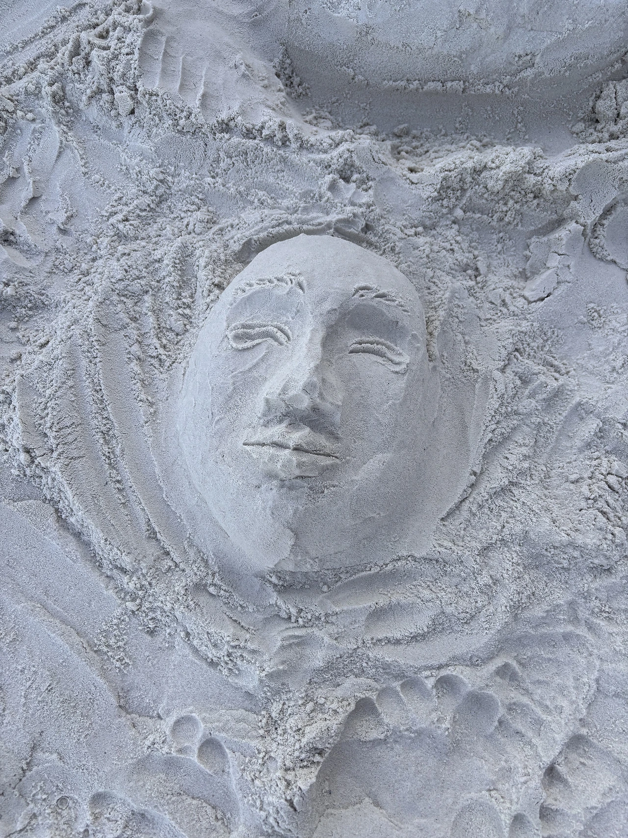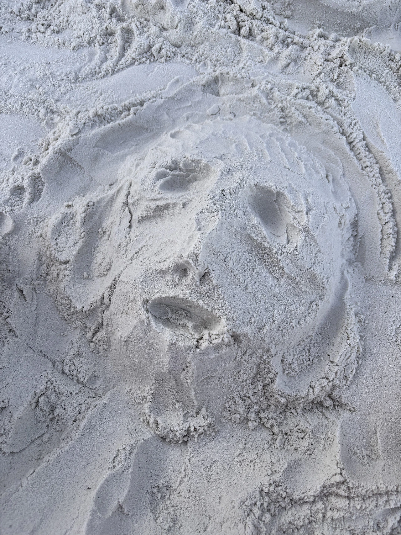 빈백에 앉아 우리는 모래로 아빠 얼굴을 만들었다.