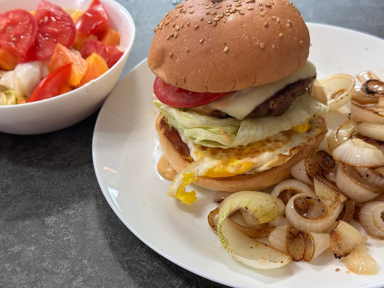 늦여름 저녁 부드러운 바람이 창문을 통해 불어오고 집 안에는 구수한 버터 향이 가득했다. 오늘 저녁은 특별한 날이었다. 식탁 위에는 아빠가 정성껏 준비한 수제 햄버거와 바삭한 감자튀김 신선한 샐러드가 가지런히 놓여 있었다. 햄버거 빵은 버터로 노릇하게 구워져 고소한 향이 퍼졌고 그 안에는 두툼한 패티와 녹아내리는 치즈, 반숙 계란, 아보카도 슬라이스가 층층이 쌓여 있었다. 이 완벽한 조합은 보기만 해도 군침이 돌게 만들었다.