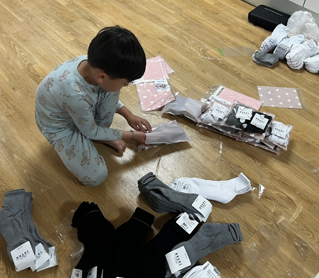 나는 잠시 고민했다. 둘째는 이미 한 번의 작업을 통해 포장하는 법을 익혔기 때문에 나머지 작업을 훨씬 더 효율적으로 처리할 수 있을 것이다. 반면, 첫째 아는 이 작업에 대한 경험이 없기 때문에 처음부터 배워가며 진행해야 한다. 이런 이유로 나는 첫째에게 이천 원을 줄 수 없다고 말했다. 결국, 경험을 쌓은 둘째가 천 원을 받으며 남은 작업을 마무리했다.