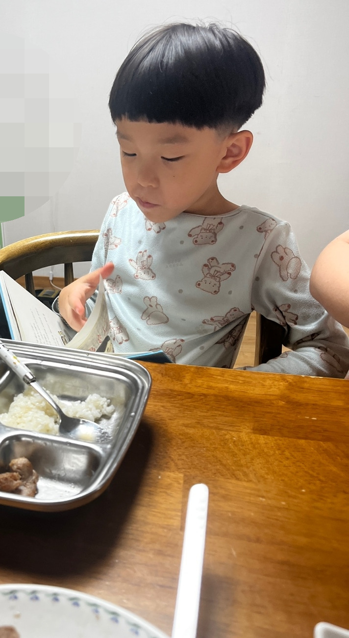 아빠는 고개를 끄덕이며 미소 지었다. “맞아 시간을 정해두고 꾸준히 읽는 것도 좋은 방법이지. 그런데 예온아, 밥 먹을 땐 책을 보지 말고 밥에 집중하는 게 좋지 않을까?”
